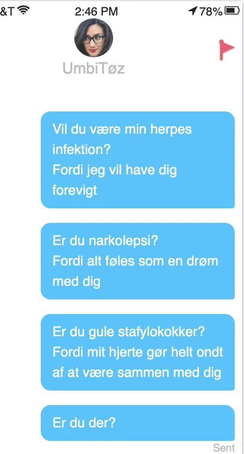 ”Fuck, jeg glæder mig til at se dig under rigtige mænd” ”Vidste du at grupperummene på 3. sal kan låses indefra?” ”Jeg er i UMBI” - Virker bedst, hvis du er i UMBI ”Med 95% sikkerhed vil du være moderat tilfreds efter en aften med mig” ”Jeg er skribent for et anerkendt blad” - Virker ikke hvis du er i ACUTA ACUTA fralægger sig alt ansvar for evt. konsekvenser ved brug, heriblandt drinks i ansigtet, blow-out fraktur og/eller livslang kærlighed.