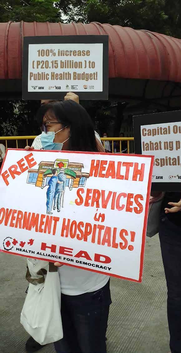 Volg, like en deel de socialemediaberichten van de Filipijnse Alliance of Health Workers. Zo laat je hen weten dat zij er niet alleen voor staan.