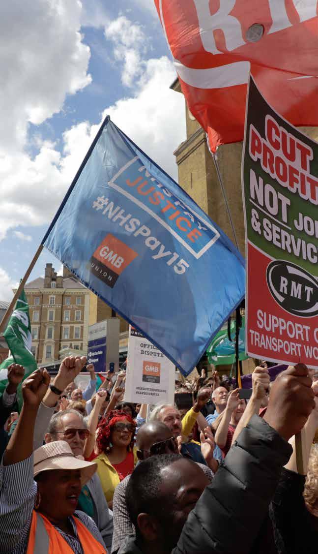 Toen de Britse nationale spoorweg-, maritieme en transportvakbond (RMT) aan het begin van de zomer aankondigde dat er na vastge lopen loononderhandelingen niets anders opzat dan tot staking over te gaan, dacht de conservatieve rege ring dat de onrust van korte duur zou zijn. “Ze dachten onze actie snel te kunnen breken”, vertelt secreta ris-generaal van de RMT Mick Lynch. “Maar dat misprijzen is in het gezicht van de regering ontploft. Wanneer de Britten onze frustraties zagen, herkenden ze zich daarin, ruim 70 procent van de bevolking steunde ons volgens een peiling.”