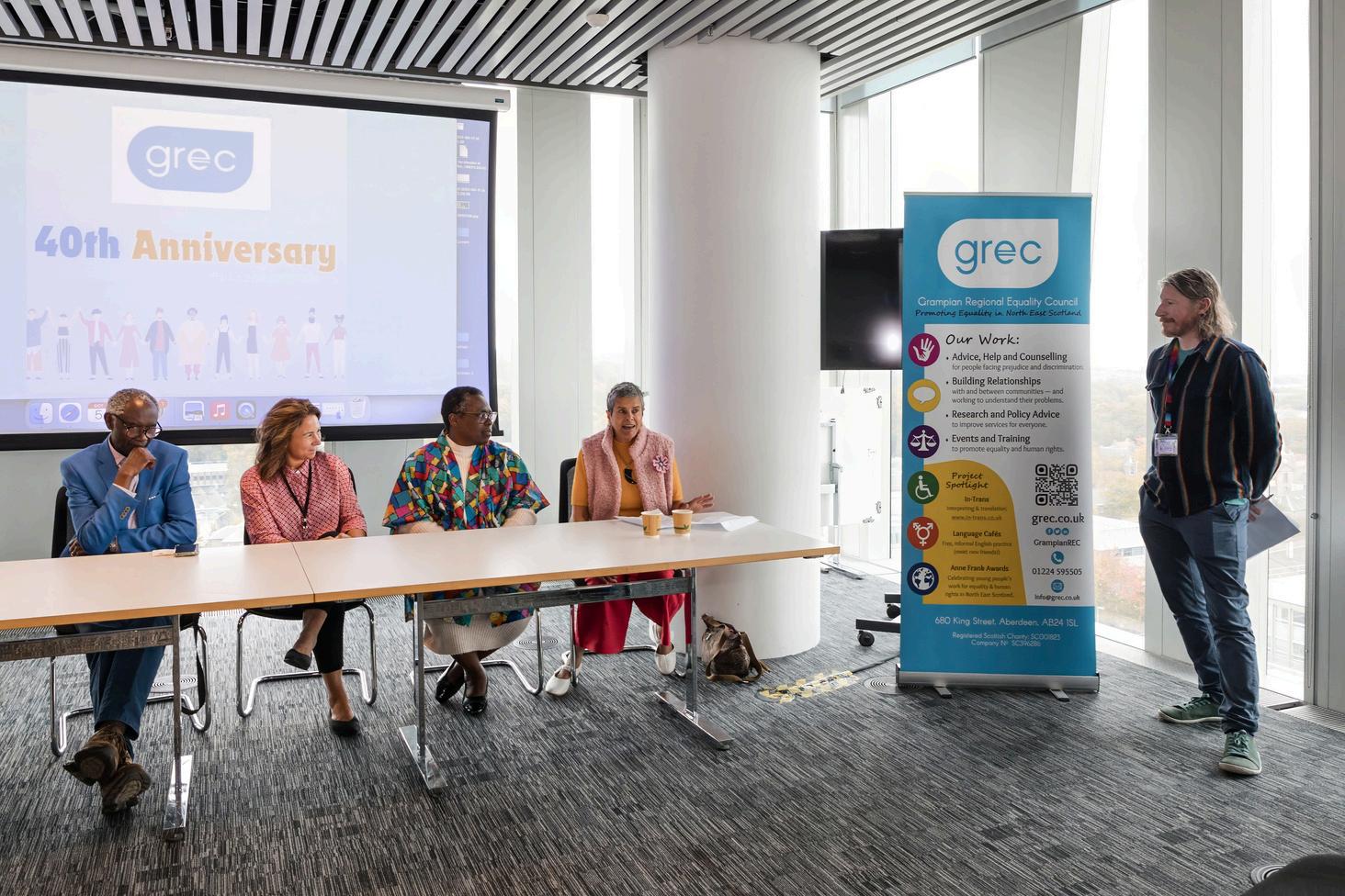 GREC members, friends and supporters of GREC's work. There were two rounds of panel discussions with trustees, volunteers and former directors of GREC where they reflected on the organisation’s journey since its beginning, sharing insights about how GREC has evolved over the decades, adapting its mission and services to meet the changing needs of society and expanding its reach in the Grampian region