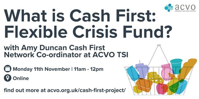 ACVO’s Cash First Network Co-Ordinator, Amy Duncan, will be holding a webinar to explain the Cash First concept and how the individuals you support can be referred to the Cash First; Flexible Crisis Fund