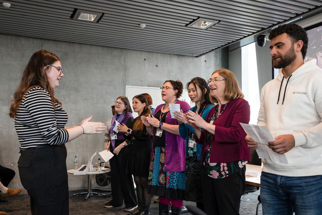 The GREC choir included community members, volunteers and staff members The audience joined an emotional sing-along of songs including John Lennon's Imagine, Give Me Wings, Banaha, and True Colours. The meaningful lyrics brought a powerful sense of togetherness to the occasion, symbolising the core values of equality, humanity and inclusion that GREC has championed for four decades.