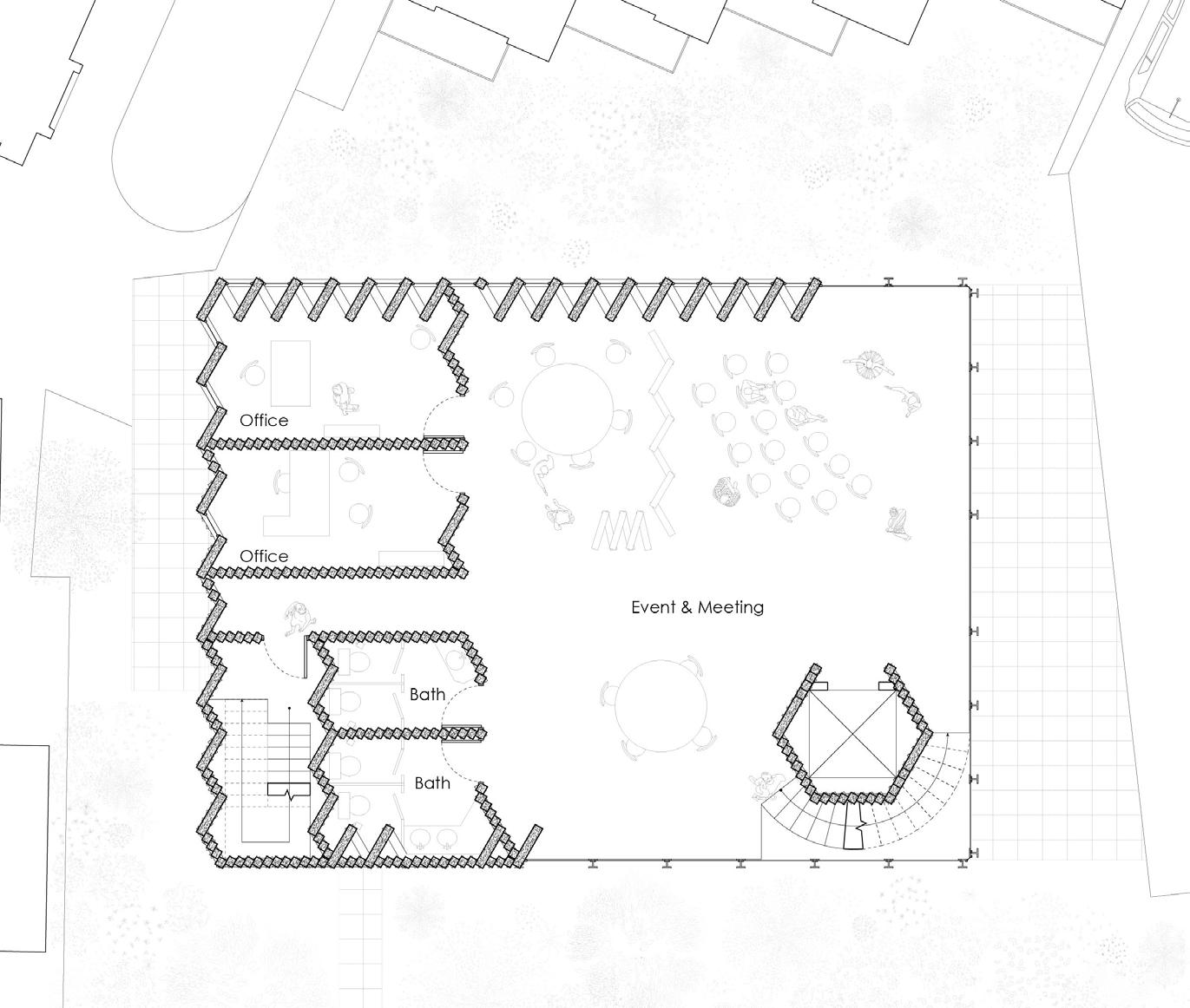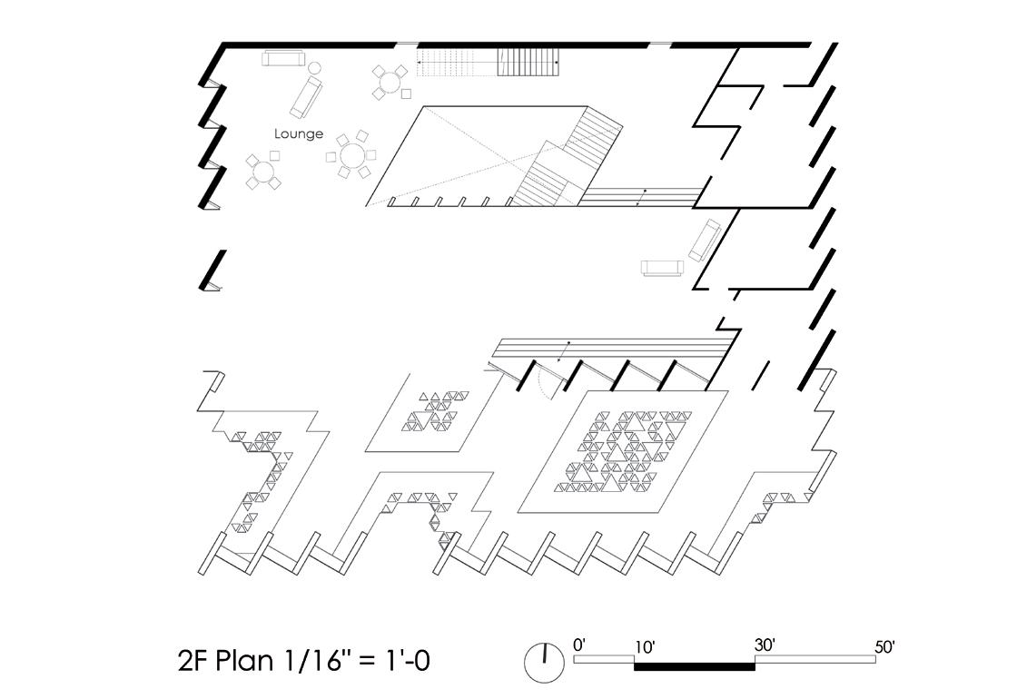 This project’s aim is to create a concept of an abroad campus for Syracuse University’s fashion design program located in Tokyo. The basis of this design is a lattice-like tectonic system derived from an assembly of simple units at 60 degree angles. This compressive system springs up from the ground floor growing outward as it rises. The system opens up towards the main street with a large curtain wall and closes up for greater privacy along the back walls which face residential areas. Pockets created by the lattice allow for windows and light to reach through the wall and can also allow for storage. Inside there are offices, studio space, a large event room, and various facilities for models and designers such as changing rooms.