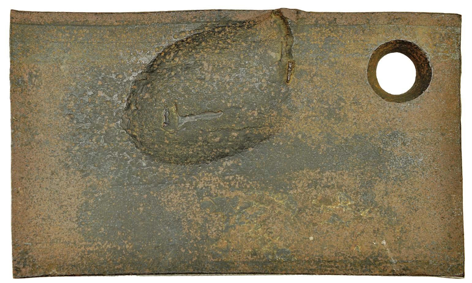 The design was inspired by an account of the Battle of Mobile Bay, written by J. C. Kinney in 1881. In Overend's painting, the viewer sees the ironclad CSS Tennessee on the right scraping alongside the USS Hartford after attempting to ram the wood-hauled Hartford. Sailors clamor to their stations, firing cannon at pointblank range at the Tennessee, while Admiral Farragut stands on the edge of the rope rigging in a strong and commanding pose. It was during the Battle of Mobile Bay that Farragut is credited to exclaim, "Damn the torpedoes!"; a reference to navel mines, not modern torpedoes.