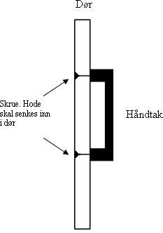 For å unngå at skruehode for håndtak/knotter lager merker/skader på andre skap eller skuffer skal skruehode senkes inn i døra.