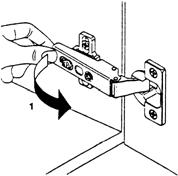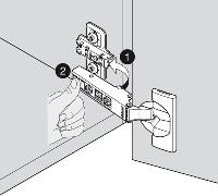 Justering inn/ut av hengsel fra festeplate