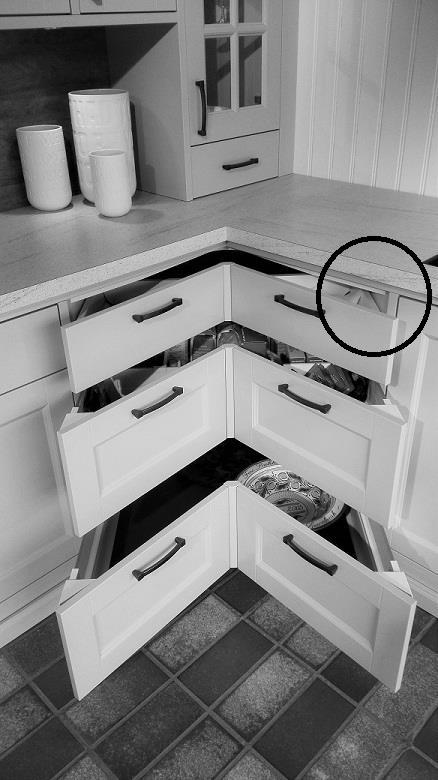 ▪ Feste av grep i hjørneskapsdører
