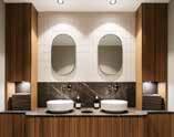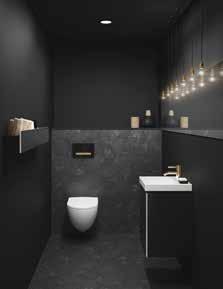 satzwaschbecken oder fließend in den Waschtisch integriert –, Badewannen und die dazu passenden Unterbaumöbel aus Holz. Auch