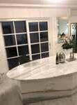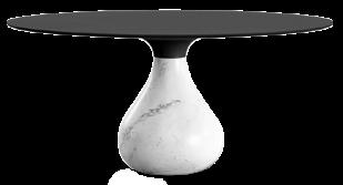 Gegensätze ziehen sich an. Und so sind es hier neben dem farblichen Kontrast der Mix aus massivem Marmor und dem tropfenförmigen Tischbein, der es spannend macht.