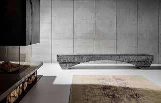wirken. In Lichtinseln arrangiert, warten hier Wohnensembles darauf, entdeckt zu werden. Besonderes Highlight: die rauen Wände in dunklem Anthrazit sind eigentlich eine Außenfassade, erzeugen im Innenraum aber eine ganz besondere Stimmung.