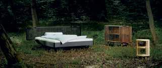 zigartiger Weise zum Wohlbefinden des Menschen beitragen. Basis der Möbelserie ist ein Massivholzrahmen mit ausgeklügeltem Hartholz-Stecksystem, ganz ohne Metall, welcher mit drei unterschiedlichen Fußvarianten und Kopfhäuptern kombiniert werden kann.