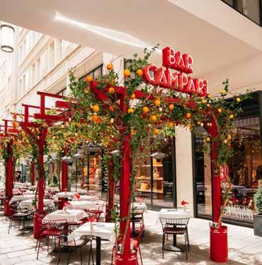 Italien in der Wiener Innenstadt: sowohl die Bar Campari im Goldenen Quartier wie auch das Schwesterlokal in der Design-Metropole Mailand stammen aus der Feder Matteo Thuns.die Ähnlichkeit ist kein Zufall. Hintergedanke des Lokals unter der Schirmherrschaft von Marco Simonis ist es, auch die kleinen Pausen zwischendurch so richtig zu genießen. Mit einer kreativen Auswahl von wunderschön angerichteten Tatars in Zwei-Bissen-Größe und feinen Tropfen zum Anstoßen. Sogar die Verpackung zum Mitnehmen wird hier zum Design-Stück. Es muss eben nicht immer das mehrgän-