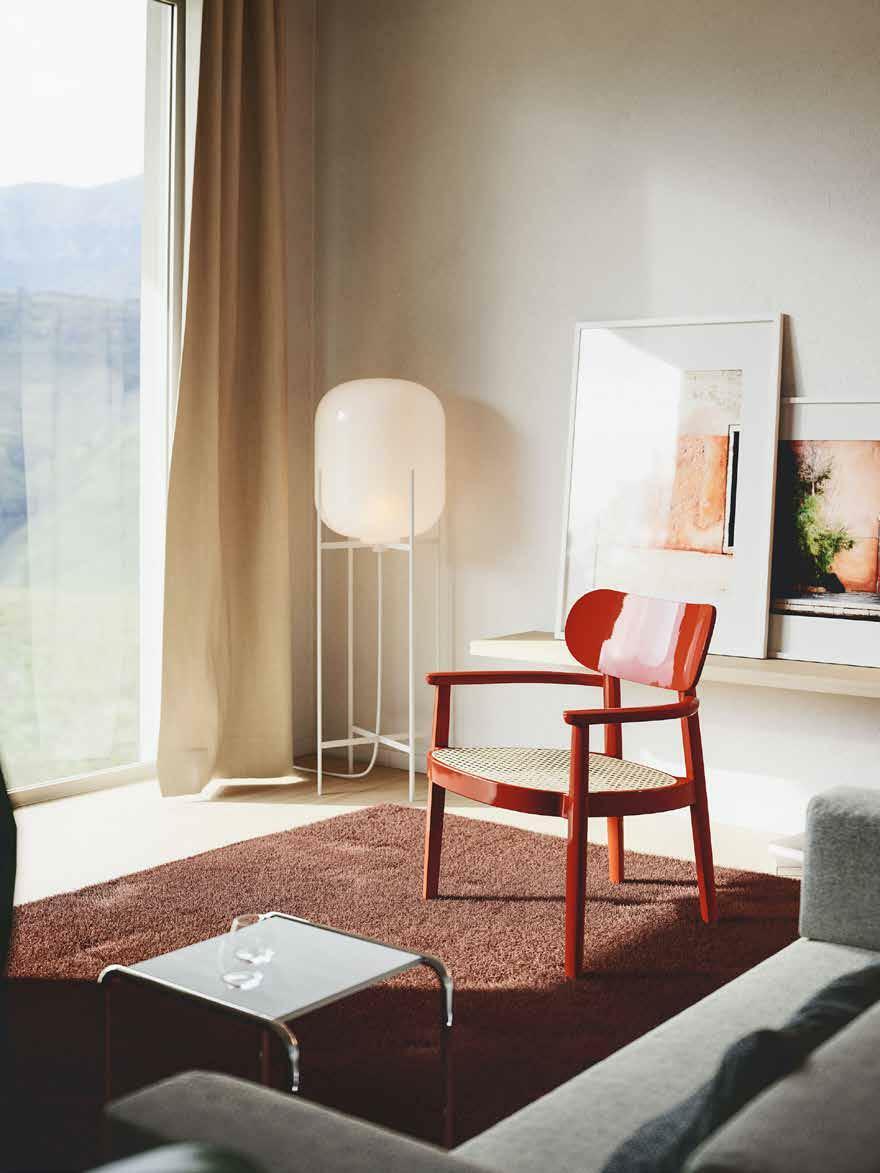 Er will das große Ganze, aber auch die Perfektion bis ins kleinste Detail. Die Handwerkskunst unserer Vorfahren ist wieder in – aber man muss sie auch zeigen. Storytelling ist das Nonplusultra und zieht sich durch alle Branchen. Woher kommen die Materialien? Wer sind die Menschen hinter dem Design? Wie lange wird die Tradition schon gelebt? Kooperationen sind ein oft gewählter Aufhänger. Kaum ein Label verzichtet darauf. Zwei Beispiele, die besonders interessant sind, wenn es um Ungewöhnliches geht: der Thonet-Stuhl 119, Design Sebastian Herkner, und die Küche Very Simple Teklan Edition. Zu Thonet: Der Stuhl, besonders schön in dunkelrotem Hochglanzlack, ist ein leichter Lounger, der als Generalist punktet. Herkner: „Sowohl das Design als auch die Fertigung des Loungesessels 119 unterstreicht die Balance zwischen Tradition und Innovation.“ In der Herstellung trifft handwerkliches Bugholzverfahren auf neueste CNC-Technologie. Die Bespannung aus Rohrgeflecht erlaubt grandiose Licht-Schattenspiele – zwar nur ein Detail, aber ein bezauberndes. Jetzt zu Very Simple Kitchen, einem noch recht jungen Unternehmen aus Bologna, das auf klare Linien und kräftige Farben setzt. Die Küchen sind Nomaden, können versetzt und erweitert werden. Die aktuelle Zusammenarbeit mit Tekla Evelina Severin ist