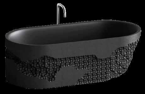 Meteorite nennt sich die Kollektion, der Name erklärt sich durch die metallische Patina, „wie sie auf den seltensten Meteoriten zu finden ist“, so Sandhelden–CEO und Mitgründer Faure. Eine Badkollektion aus Sand zu bauen scheint gewagt, ist aber bei genauer Betrachtung schlüssig. „Das Material fühlt sich natürlich an und hat eine warme und positive Assoziation. Es gehört zu den günstigsten Verfahren im 3D-Druck.“ Sand speichert Wärme und gibt diese nur langsam ab – man kennt dieses wohlige Gefühl aus dem Strandurlaub. „Wir möchten die klassische Wahrnehmung von Sand als loses und vergängliches Material ändern, in dem wir ihn zu langlebigen und robusten Objekten formen.“ Der größte Vorteil, da fackelt Faure nicht lange, ist die Flexibilität. „Sanitärweiße runde Waschbecken können wir zwar auch produzieren, aber das überlassen wir den klassischen Herstellern. Möchte ein Kunde jedoch ein moosgrünes Modell in einer sehr speziellen Größe und Form zu einem fairen Preis, wird er – sehr wahrscheinlich – nur bei uns fündig.“ ∏