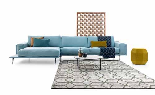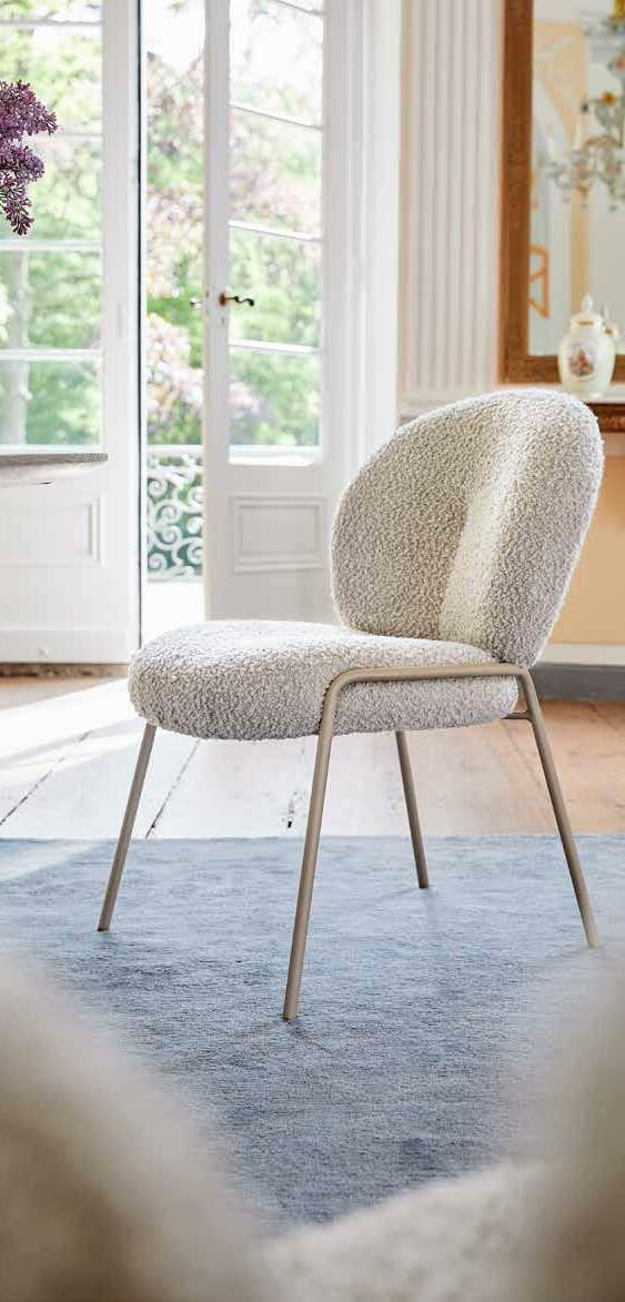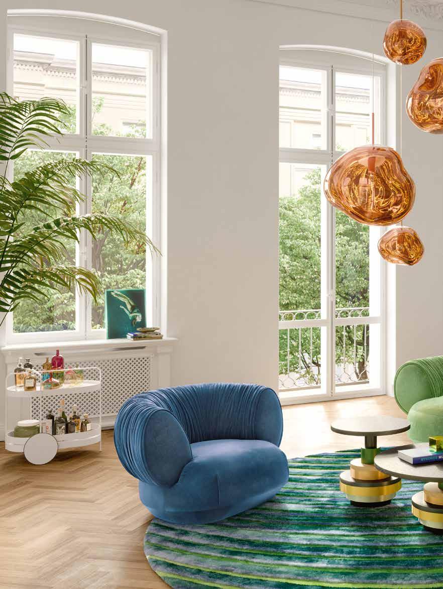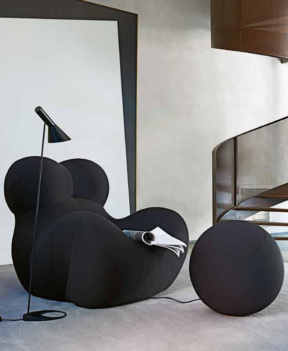 itzen, liegen, ja sogar leben wie auf Wolken S – klingt das nicht gut? Zwar hat das noch keiner tatsächlich ausprobieren können, aber alleine die Vorstellung ist himmlisch. Wer sich die Kollektionen der etablierten und upcoming Brands ansieht, wird derzeit immer wieder auf den Wolkenvergleich treffen. Möbelstücke zeigen sich von ihrer ganz weichen Seite, voluminös und leicht zugleich. Insbesondere Sessel und Fauteuils kommen auffallend oft flauschig-weich und optisch aufgepumpt daher. Um nur ein paar Beispiele für die Softies zu nennen: Nana (Freifrau), Coral (Paolo Castelli), Up (B&B Italia), Moro (Sebastian Herkner für La Manufacture) oder Soriana (Cassina). Letzterer erinnert stark an Erwin Wurm, an eine seiner bekannten „Fat“-Skulpturen, und ist wohl die Klimax eines unübersehbaren Trends, der uns das Leben angenehmer machen möchte. Bouclé-Wolle ist mit ihrer angenehmen Textur ein absoluter Designer-Liebling. Die Welt draußen hat so viele Ecken und Kanten, dass die Designer für zu Hause das Kontrastprogramm auffahren. Noch sind wir nicht bereit für eine neue Geradlinigkeit, noch mögen wir es lieber gut gepolstert. Eine aktuelle Studie von IKEA („Life at Home Report“) unterstreicht das Ganze mit eindrucksvollen Zahlen: „84 % der Befragten gaben demnach an, es sei wichtig, die Kontrolle über sein Zuhause zu haben“ – wenn die Welt so unvorhersehbar ist. 60 % haben innerhalb des letzten Jahres Veränderungen in ihrem Heim vorgenommen, eine signifikante Zahl.