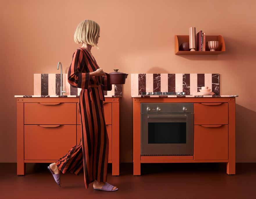 Thierry von Piero Lissoni für Kartell versprüht Farbenfreude. einfach so 2022. Leichter rostfreier Stahl trifft auf italienischen Marmor – Letzterer fungiert nicht nur als Arbeitsplatte, sondern auch als vertikales Designelement. So clever, so edgy und in zwei Farbvarianten wählbar. Insbesondere das Modell mit pinkem und rotem Marmor und einem Terrakotta-Finish der Küchenmodule ist ein Eyecatcher. Sowohl der Thonet 119 als auch die Very Simple Kitchen rücken ein weiteres Trendthema in den Fokus: Farbe.