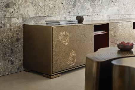 Farben, spannende Materialkombinationen und die individuellen Wünsche der Kunden.“ Soll heißen: Glas trifft auf Marmor, Holz, Metalle und Stoffe – es darf frei kombiniert werden. „So entstehen charakterstarke Einzelstücke, die den Wohnraum prägen.“