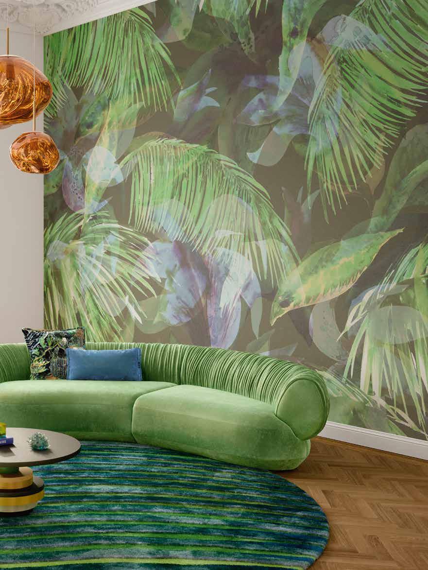 ist ein klarer Trend in Richtung weicher, deckender Farben, poppigen Designs und einer Farbwelt der 70er und 80er erkennbar.“ Das passt, ist 2022 doch das Jahr des Tigers und verspricht in Sachen Design allerhand Wowness. Der Minimal Chic hat an Boden verloren. Stattdessen erobert sich das Exaltierte, Ausladende und Verspielte mehr Terrain. Niederer zitiert nur zu gerne Donatella Versace mit „Less is less“: „Wir haben schon vor 10 Jahren mit unserer Villa Antoinette einen füllig-eleganten Retro-Stil lanciert.“ Der Interior- und Bettendesigner ist bekannt für seinen großzügigen Einsatz von Textilien, insbesondere Tapeten haben es ihm angetan. „Es freut mich wahnsinnig, dass alteingesessene Hersteller wie Élitis, Pierre Frey und Romo an die nächste Generation übergeben haben, vor allem die letzte Kollektion von Élitis war eine reine Freude.“ Niederers strahlendes Gesicht spricht Bände. Die Motive dürfen Spaß machen, die unerträgliche Leichtigkeit des Designs versprühen, wichtig ist nur: Es geht um Spaß mit Substanz, denn Nachhaltigkeit ist kein reines Lippenbekenntnis mehr. Jeder der von Design DE LUXE befragten Experten macht genau das klar: Es geht nicht mehr ohne. Bei Very Simple Kitchen werden Marmorreste verarbeitet, bei Nomad Teppiche aus Schaffell-Überresten gefertigt, und bei Flos liegt der Anteil an Recycel-Abfall während des Produktionsprozesses bei 80 %. Besonders spannend sind freilich auch Produkte aus innovativen Materialien: Böden aus Pilzen, Textilgarne aus