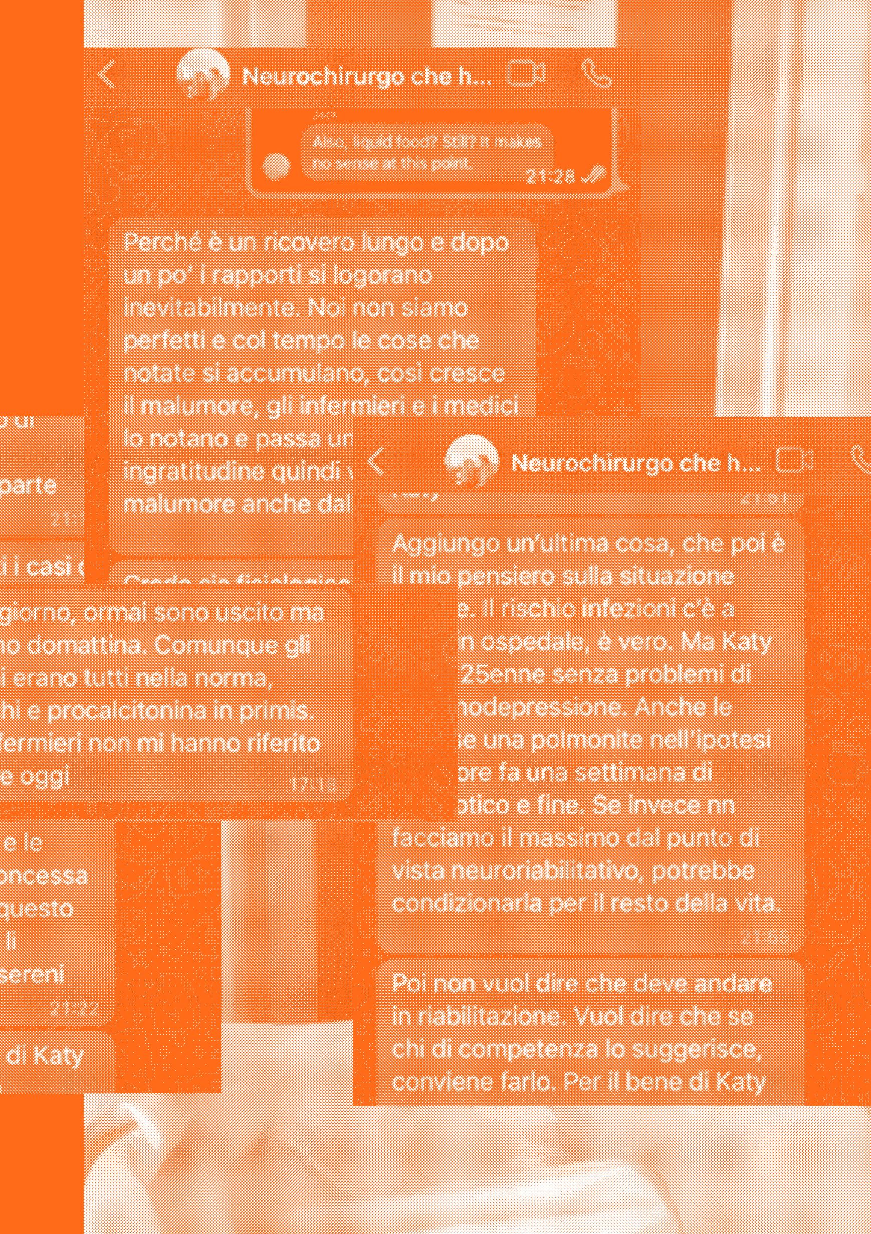 Quella notte non prestai molta attenzione ai vari messaggi che mandava mia sorella, “stiamo partendo da casa”, “siamo arrivati a Civitavecchia”, “siamo sulla nave”. Eppuro furono gli ultimi che ricevetti da parte sua per vari mesi. Fu mio Zio a chiamarmi, Kathy era in sala operatoria. Davanti al meraviglioso spettacolo della laguna Veneziana, ho ricollegato, la macchina, il viaggio per dimostrare a me la sorella maggiore che non dovevo più trattarla da bambina. Ora mia sorella sta bene, o almeno bene abbastanza. Ogni giorno cerchiamo di rendere omaggio alla grazia che ci é stata concessa. Poiché con quel viaggio per guadagnarsi l’indipendenza ha rischiato di perderla per sempre: é tornata bambina, piccola, fragile e spaventata. La dottoressa che le ha salvato la vita con l’elisoccorso mi disse come prima cosa “ci vuole un secondo a rompersi ma ci vuole molto di più ad aggiustarsi”. Abbiamo imparato ad essere pazienti, che poi è il termine con cui si indicano coloro che in ospedale ricevono le cure. Come se curarsi fosse prima di ogni cosa una questione di tempo. Per questo la sanità non può rispondere alle leggi tayloriane, forse si può migliorare l’efficienza ma non si possono accorciare i tempi, il corpo a volte guarisce ma piano, piano. Che poi è la frase che ho scritto di più in questi mesi “piano, piano”. Le barche ambulanza che vidi la Venezia mi sembrano oggi come un presagio. Era quella, la vita che occupava la mia notte. Penso che sia importante raccontare almeno una parte della nostra storia, non per narcisismo, ma perché credo che ognuno di noi abbia bisogno di ricongiungersi con la propria fragilità, che non va intesa necessariamente come un difetto. L’ambulanza non è il momento in cui il tempo della vita si interrompe ma piuttosto il momento in cui la vita incontra un altra vita, e un corpo si lascia aiutare da altri corpi disposti almeno temporaneamente a sostenerlo.