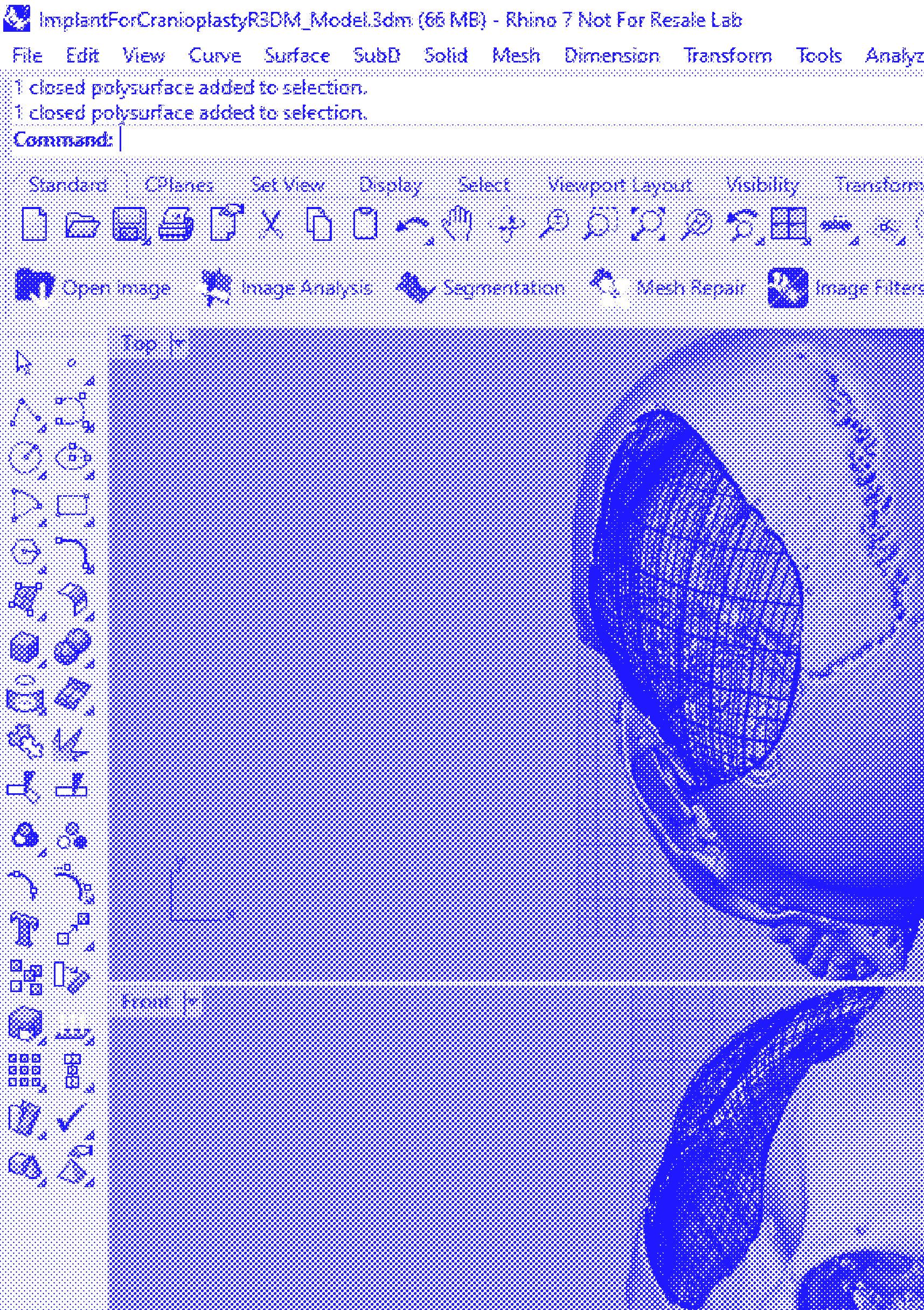 19 ImplantForCranioplastyR3DM_Model.3dm (66 MB) - Rhino 7 Not For Resale Lab