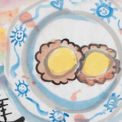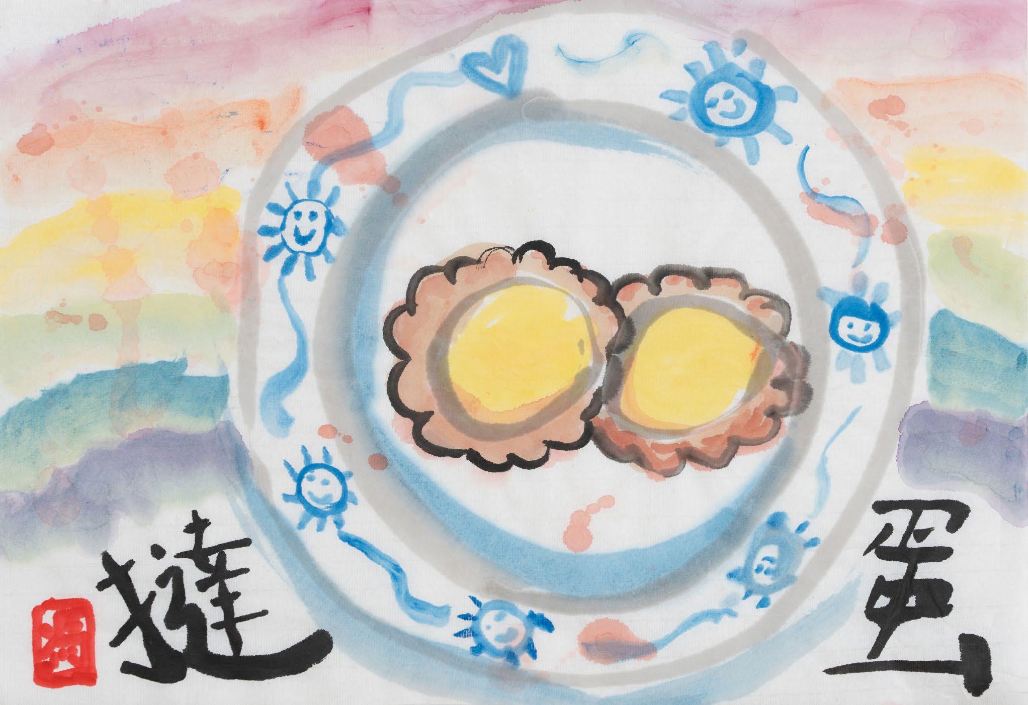 Alvin only learnt to write when he was 10 years old. As a foodie, the first words he wrote were the names of his favourite food. His favourite extracurricular activity is cooking. Through this painting, Alvin introduced the ingredients for preparing four dishes and one soup, picturing a scene where the whole family gathers together to enjoy a meal. Happiness is so simple.