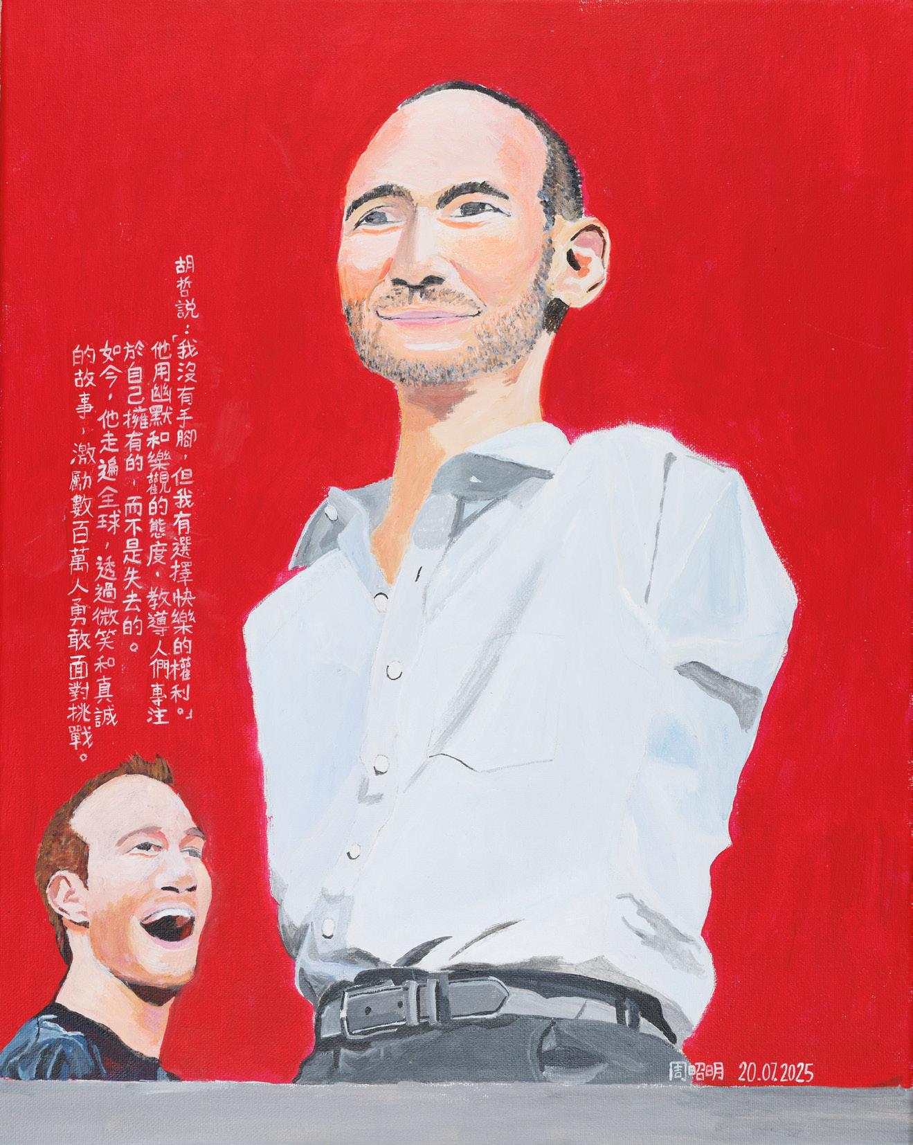 《沒有四肢的尼克•胡哲》 Nick Vujicic 塑膠彩布本 Acrylic on Canvas, 2024