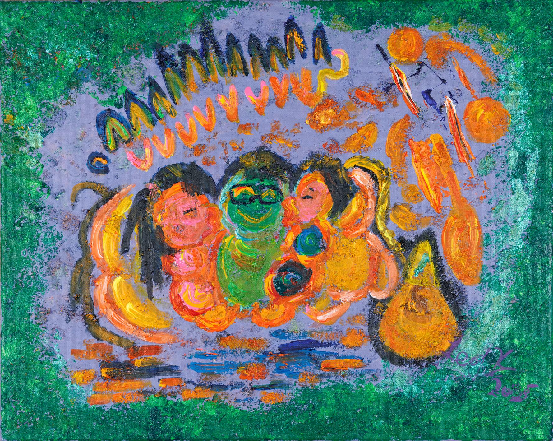 《歡笑三人組》 The Laughter of Trio 混合媒介布本 Mix Medium on Canvas, 2025 40.6 x 50.8 cm
