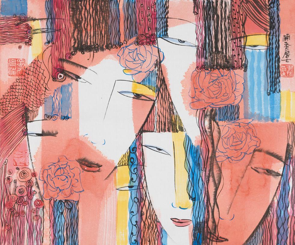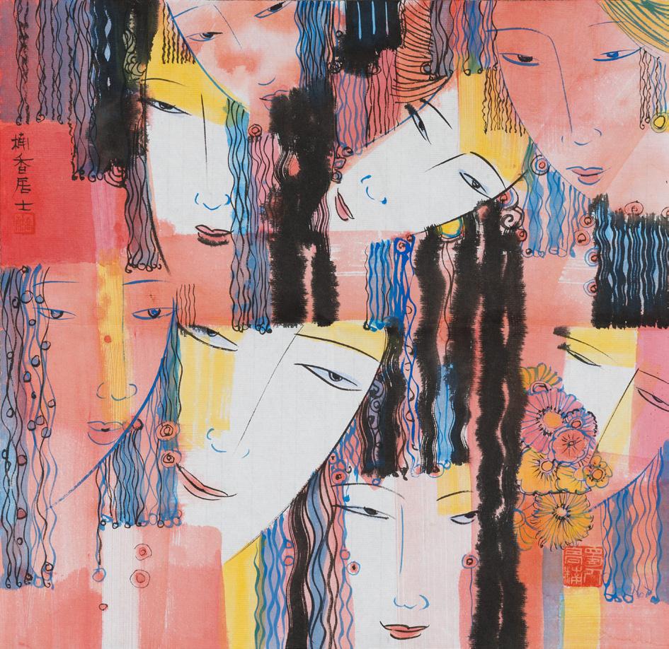 《紅塵中的花面》 Flower in the Mortal 紙本水墨設色 Ink and Colour on Paper, 2025