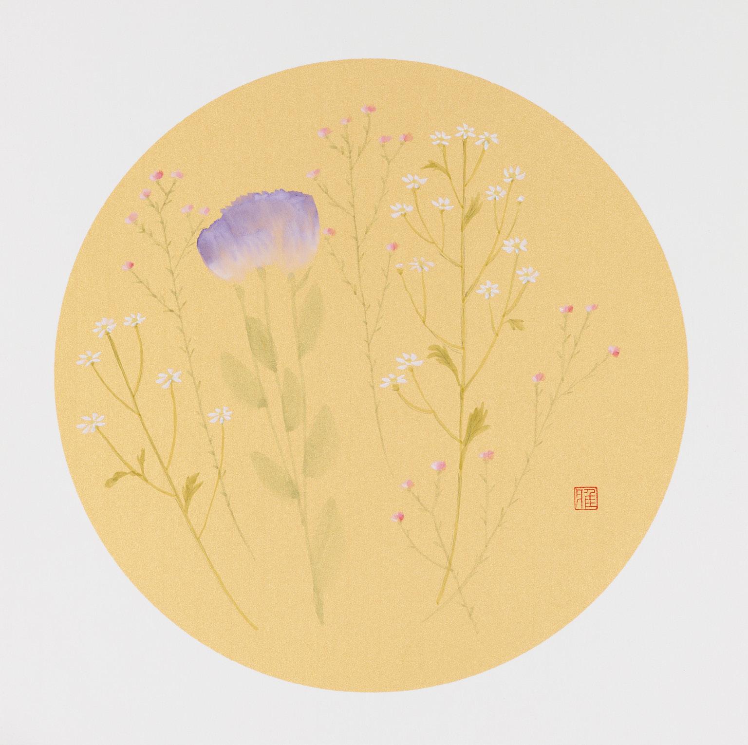 The artwork skillfully combines gongbi techniques with realism. Its inspiration comes from a deep reflection on the challenges and discrimination faced by people in recovery. Wintersweet and chrysanthemums are depicted in the background, symbolising the fragile and vulnerable status of this group within society. Meanwhile, the lisianthus conveys a sense of care, embodying the theme of nurturing marginalised communities with love and warmth.