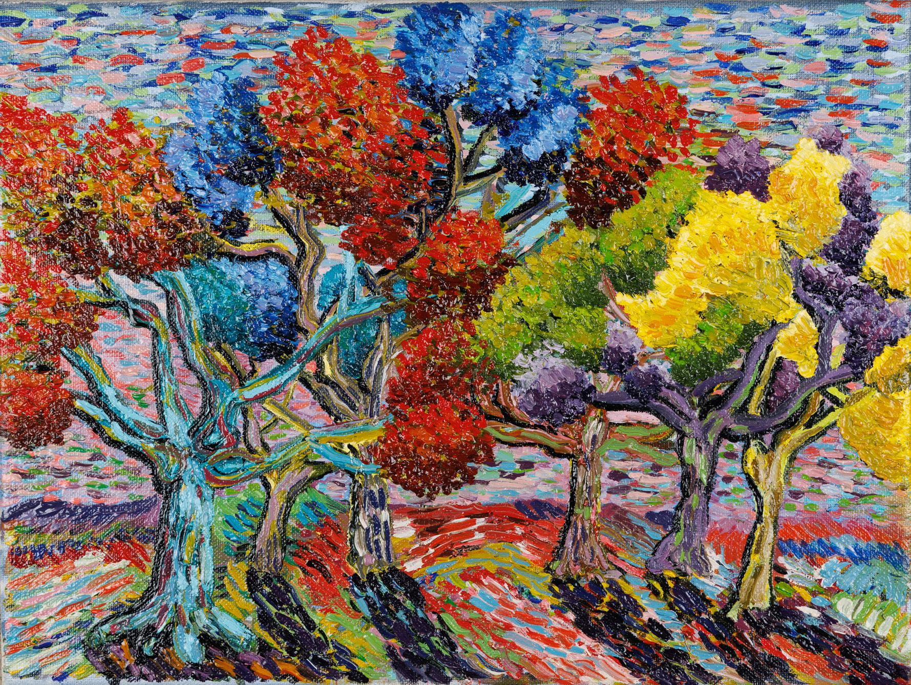 《幻彩色的一處樹景》 A Fantastically Colourful Forest 油畫布本 Oil on Canvas, 2025