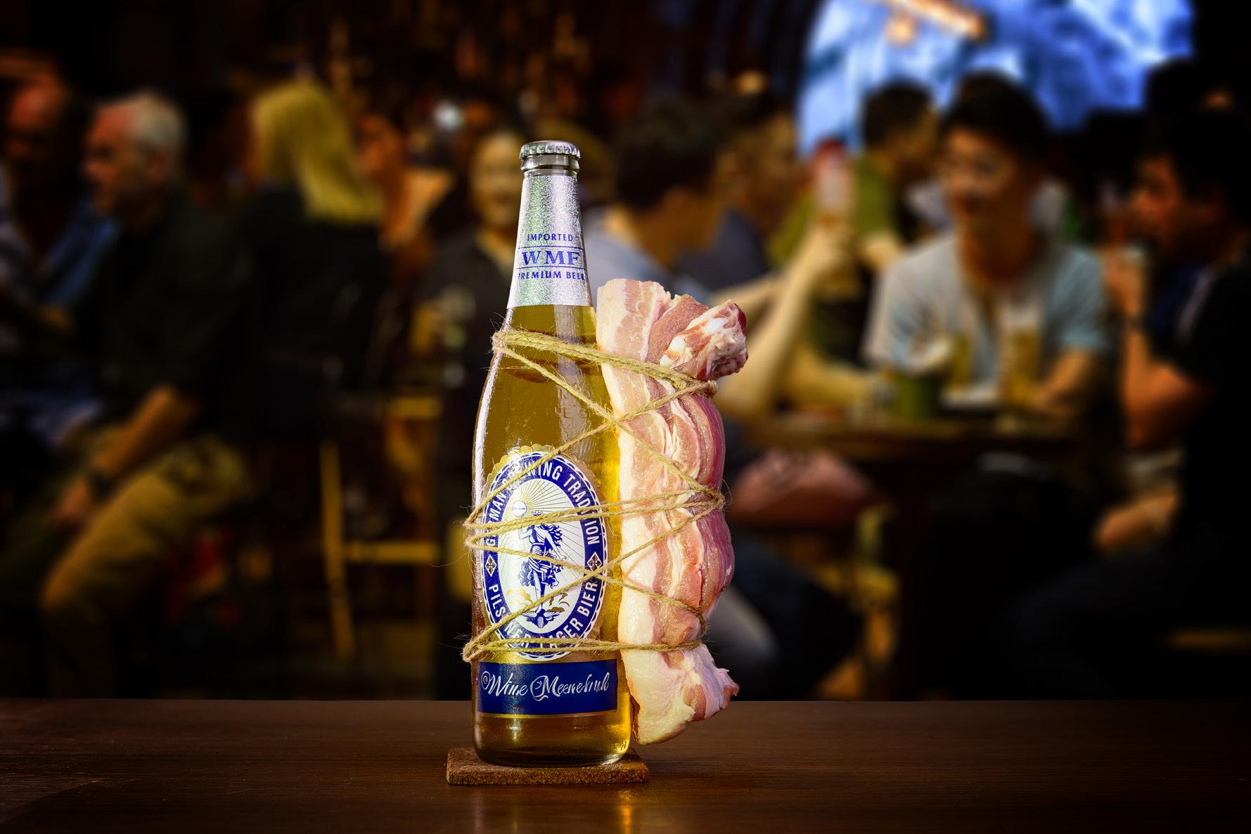 A piece of pork belly and a beer bottle—seemingly absurd, yet they capture the most genuine moments of everyday life. Laughter, companionship, and the lingering warmth of subtle tipsiness all blend into this piece.