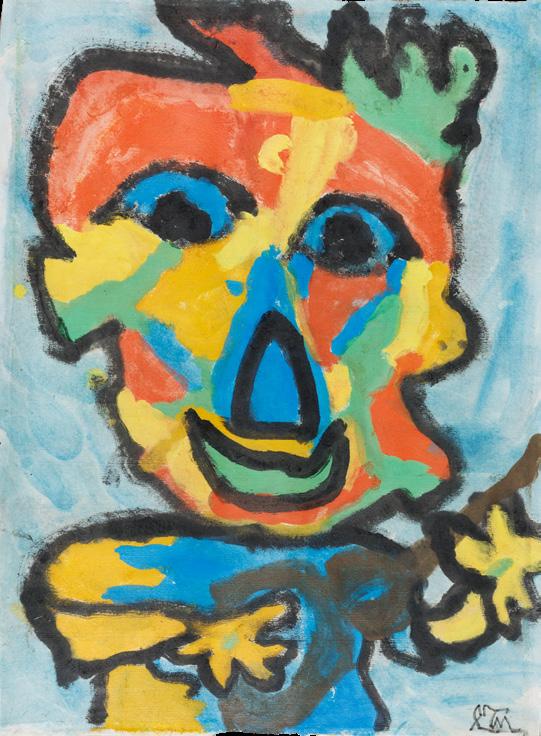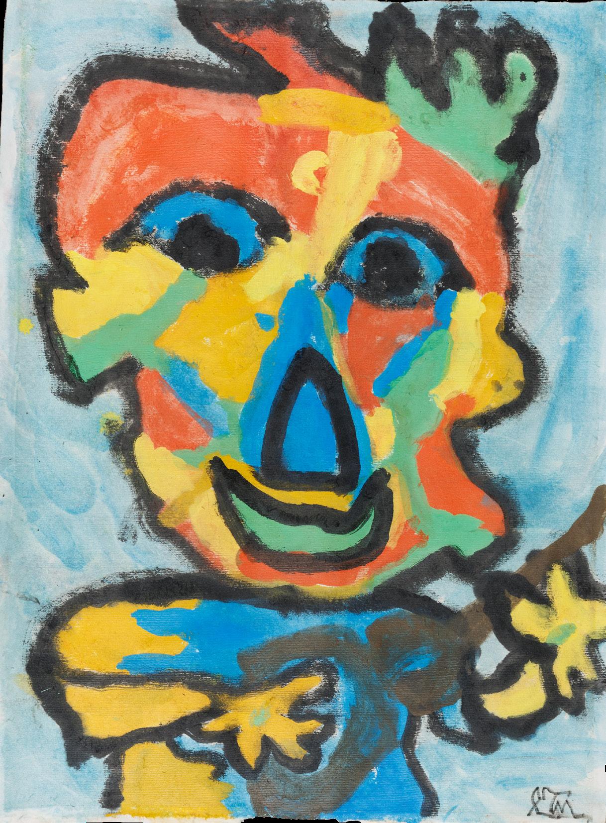 作品捕捉了畫中人物燦爛的笑容,其鮮明的 大紅唇與洋溢的喜悅神情相映成趣。