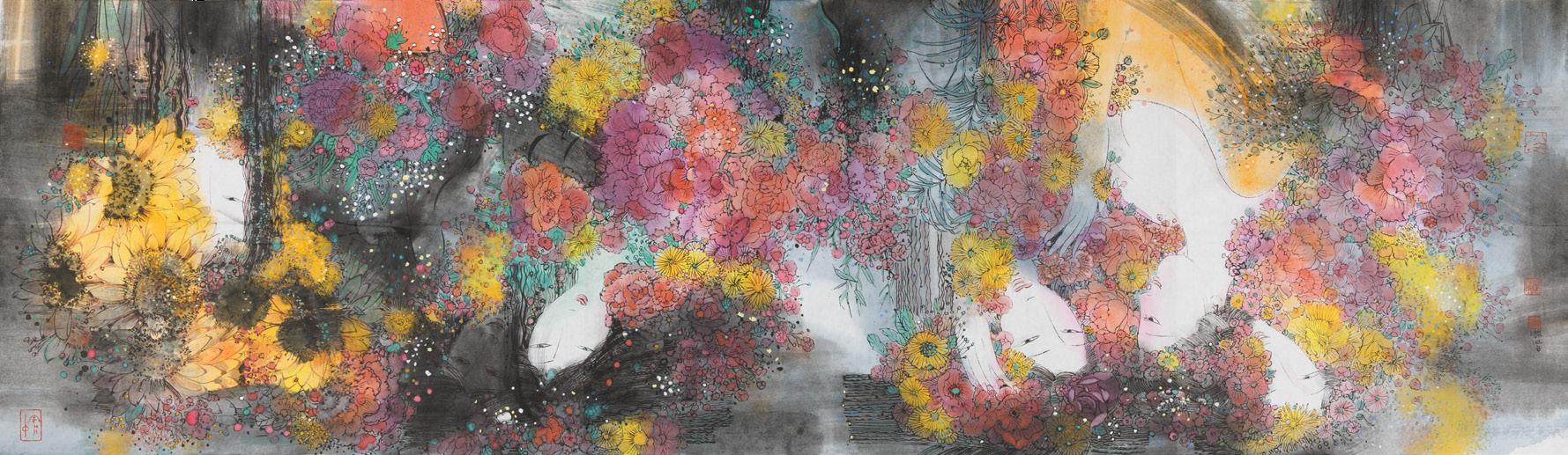 《夢中的花影》 You Are In My Dream 紙本水墨設色 Ink and Colour on Paper, 2025