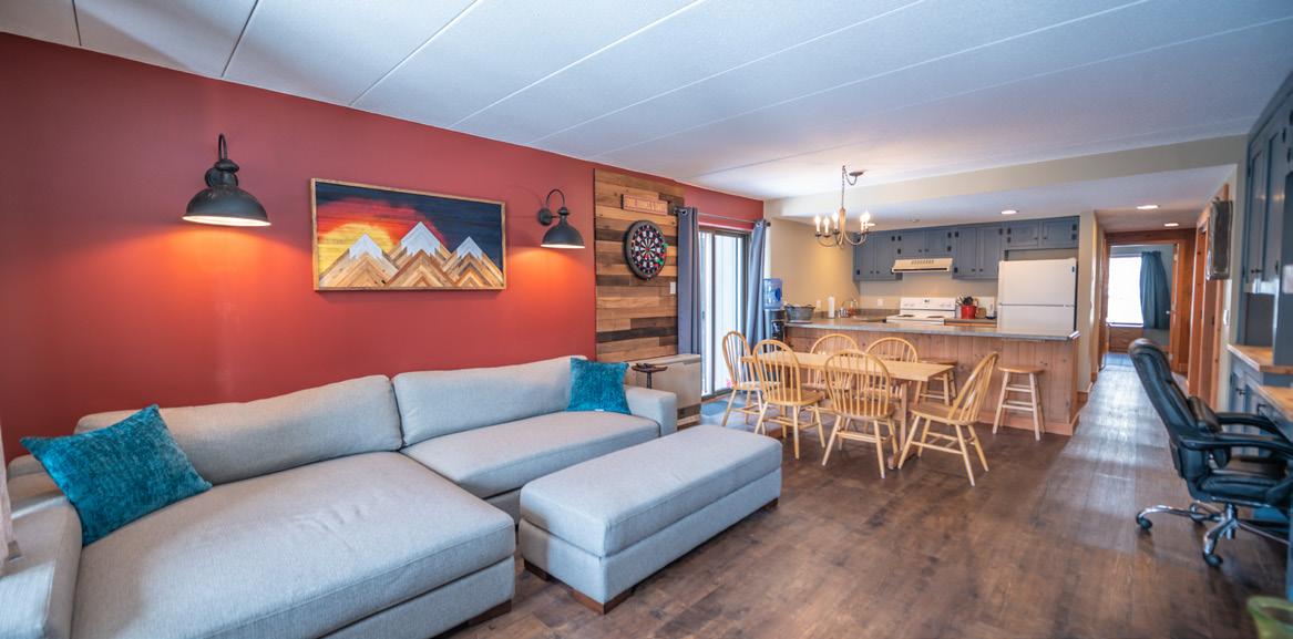 3-5 bedroom townhomes with amenities that include a large indoor pool and hot tub, racquetball and basketball courts, clay tennis courts, a full gym, recently renovated locker rooms, wood delivery, snow removal, landscaping, building maintenance, a full cross country ski center with trails throughout the development, lessons, and a warming clubhouse, direct shuttle service, and on site management.