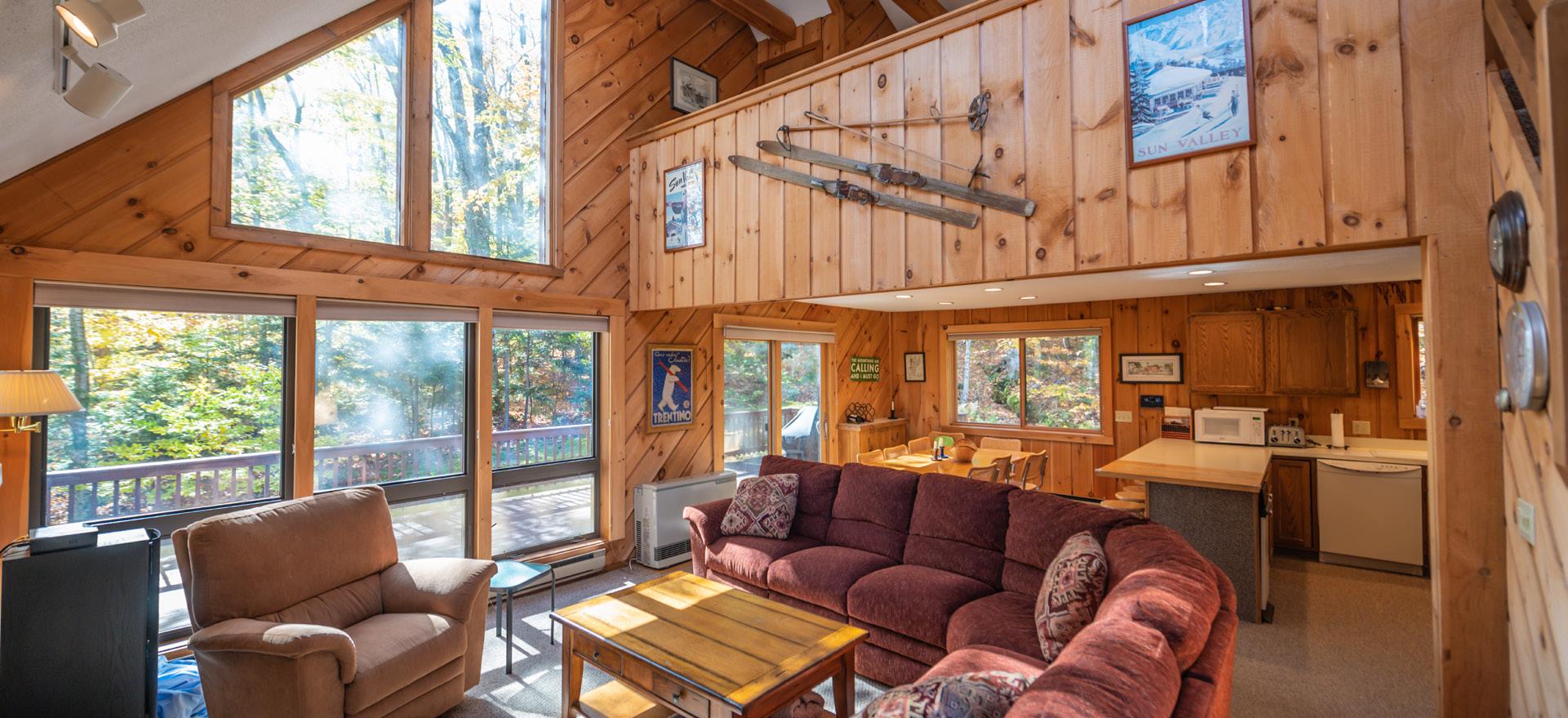 Gorgeous adirondack style townhomes just up from the base area at Mount Snow, Beautiful rustic finishes most commonly with 4 bedrooms, a main floor great room and kitchen, lower level family room, and mountain views.
