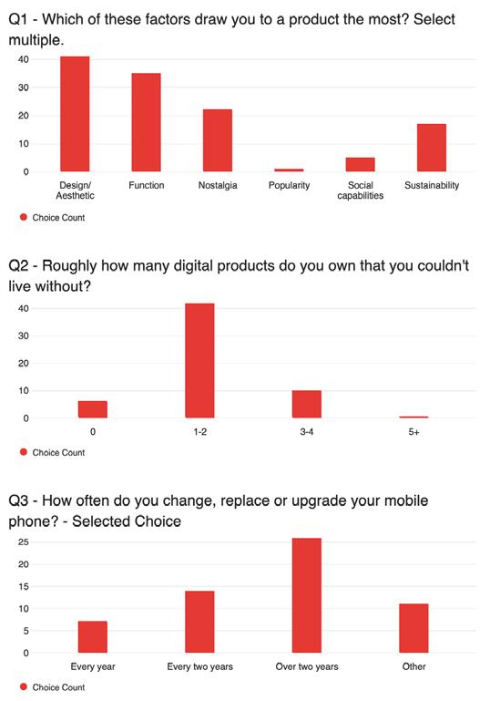 I decided the best way to gain information on what people love about their products was to conduct the research myself. This meant I could also link the questions to mobile activity and screen addiction to compare between the love of communications products and any other type of design.