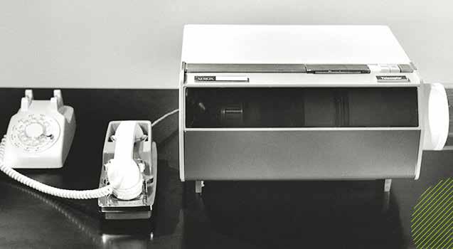 The fax machine is a dying form of communication that combines a scanning/printing feature with a telephone.