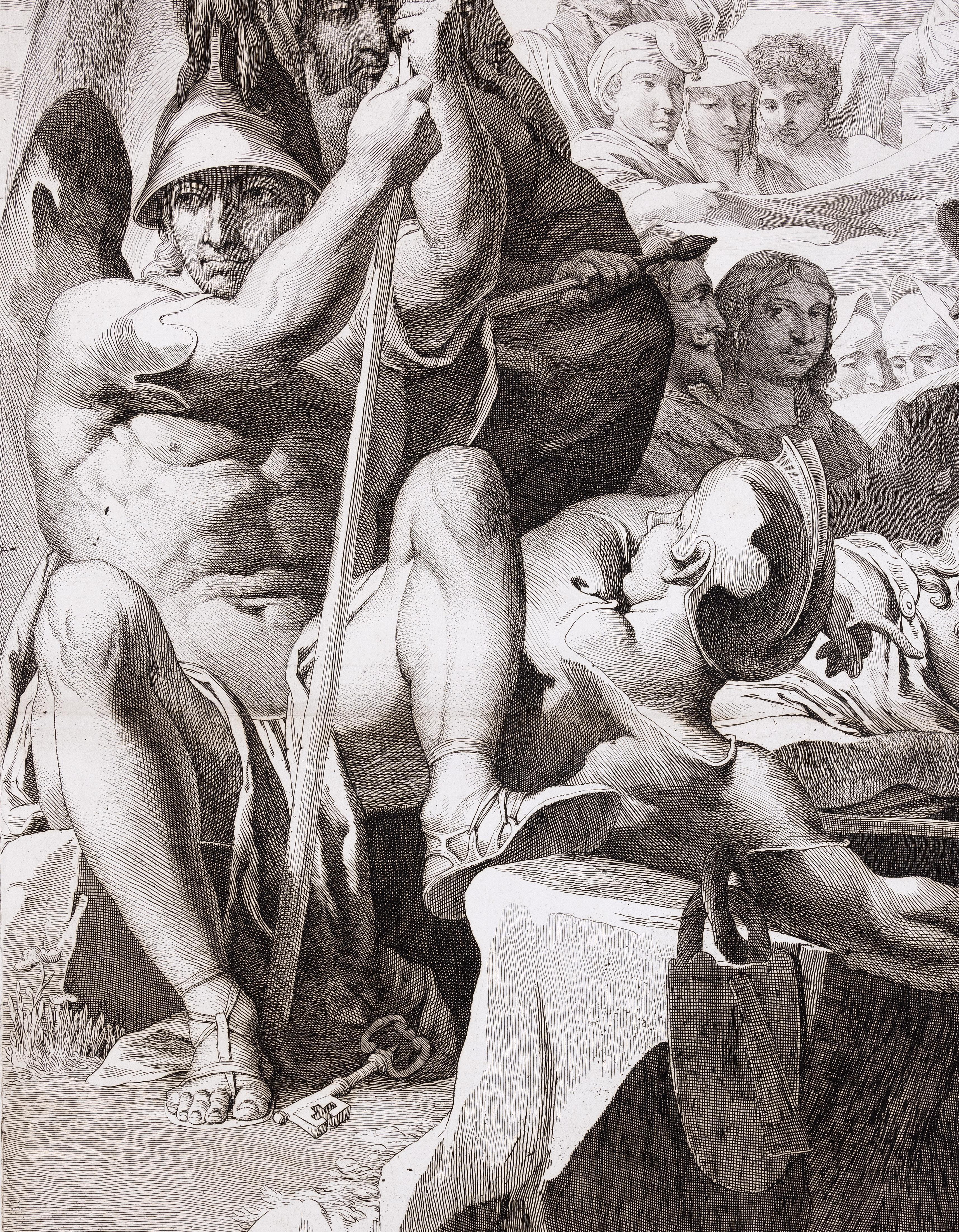 Etching and engraving, Pressly 1981.30, 74.5 x 47.5cm (plate); 84 x 62.5cm (sheet) - Framed First published by James Barry 1795 image on shield: "Leuctra"