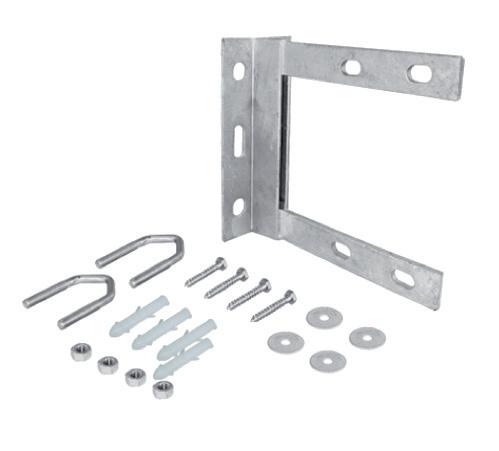 ADKRP5 Corner bracket to carry 1 x 10W/20W LED, 100W bulkhead 150W, 500W Floodlight or PIR sensor. Corner mounted, zinc finish, supplied with fixings