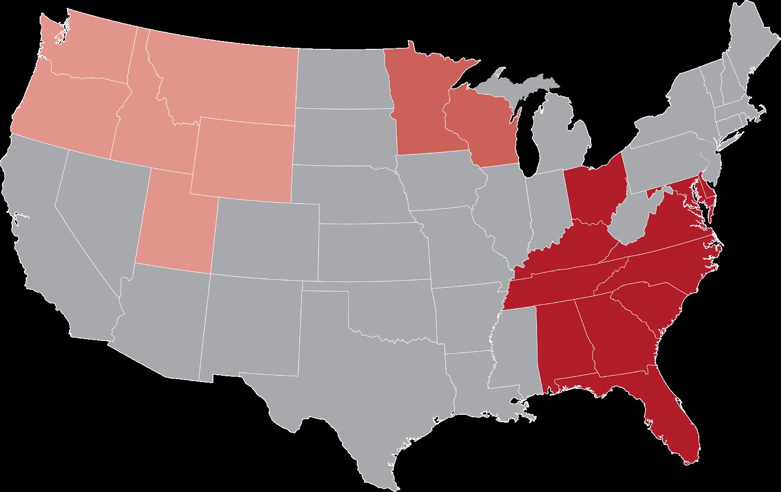 Regions: Ohio, Delaware, Maryland, District of Columbia, Kentucky, Tennessee, Virginia, North Carolina, South Carolina, Alabama, Georgia, Florida