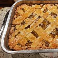Roll out the other dough ball and cut into strips. Create the top layer of lattice. Brush with 1 beaten egg. Bake for 40 minutes @350.