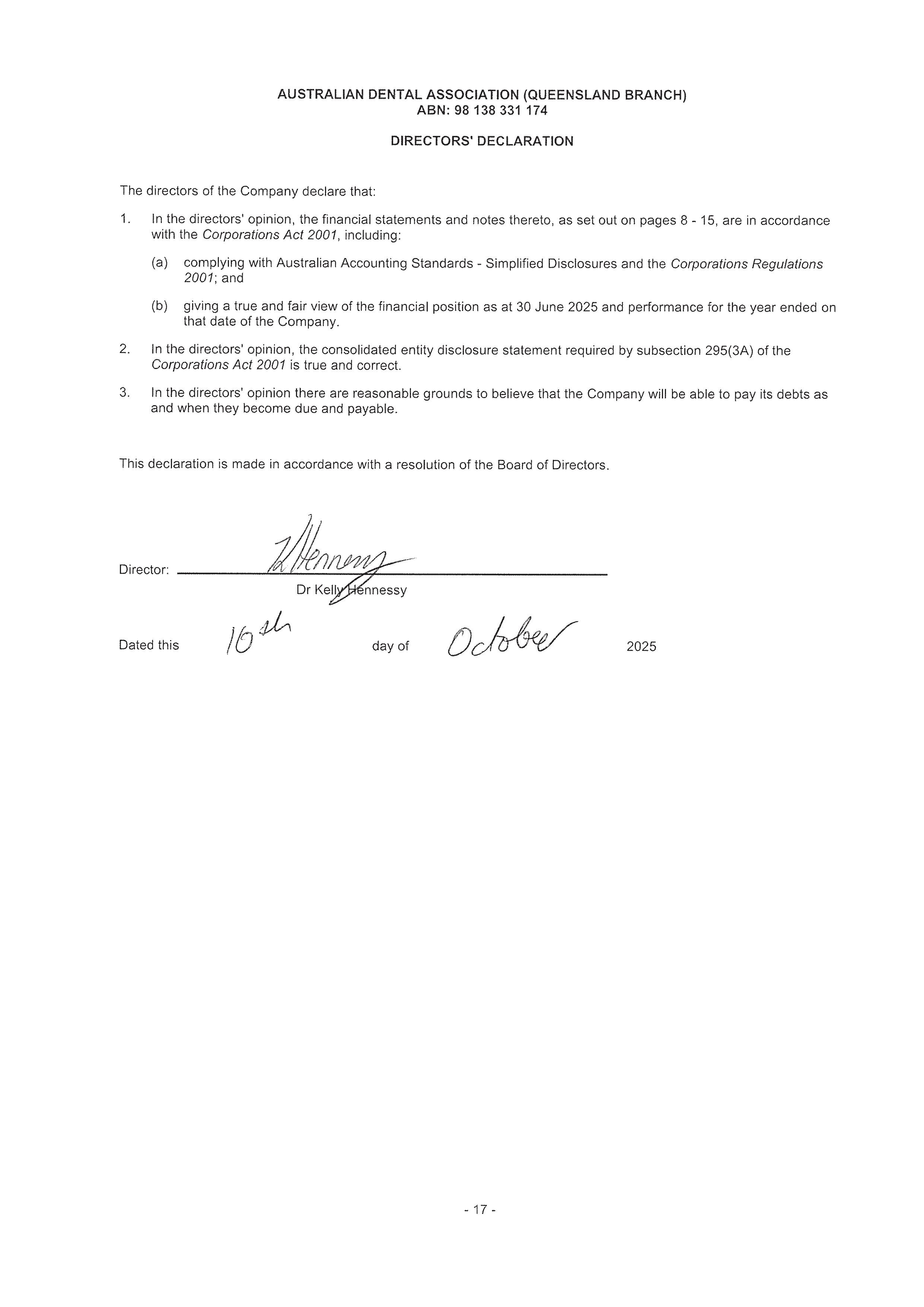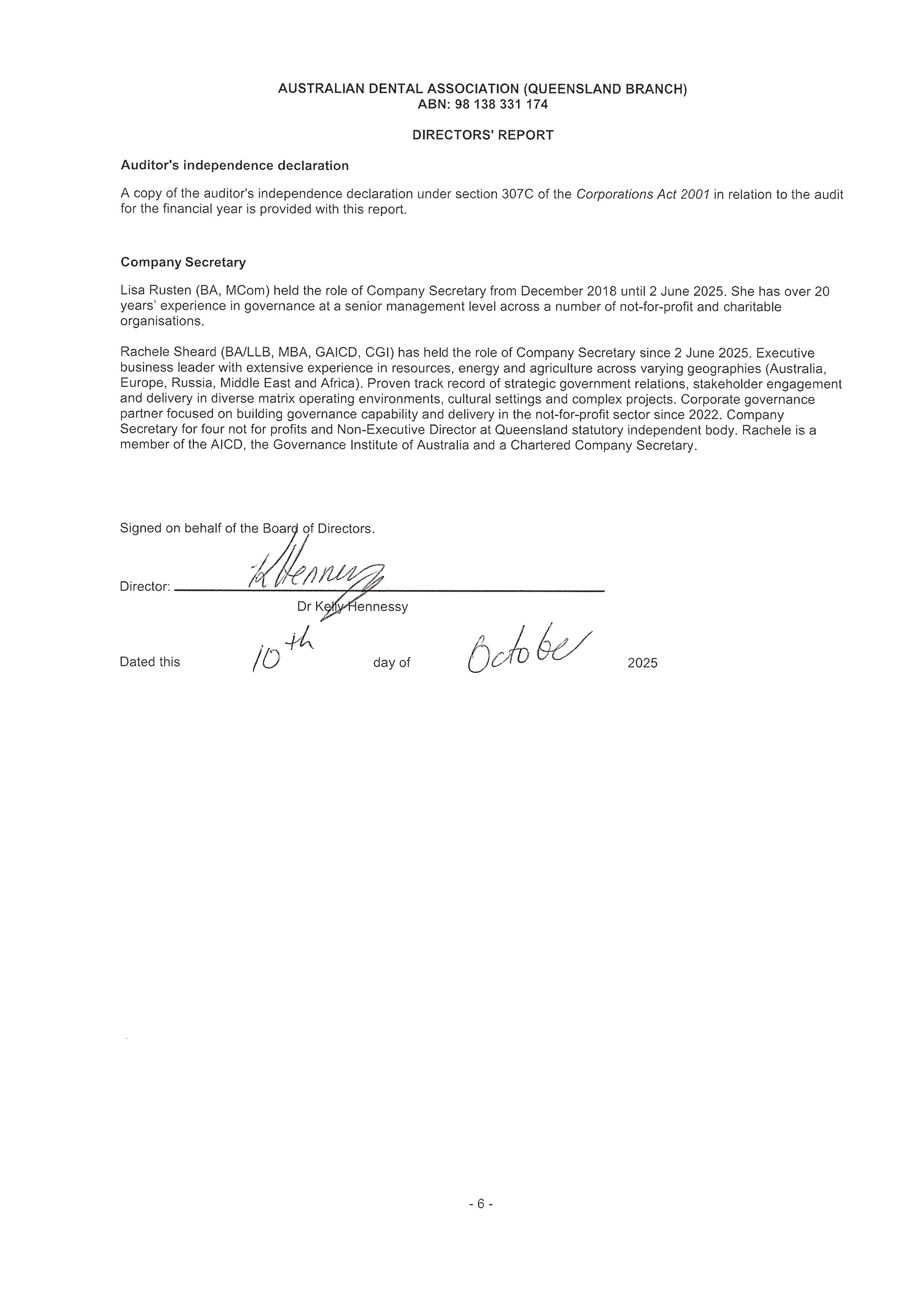 During the year the company has collected all membership fees on behalf of Australian Dental Association (Queensland Branch). At 30 June 2025, no amount remains owing to ADAQ for membership fees collected by the company