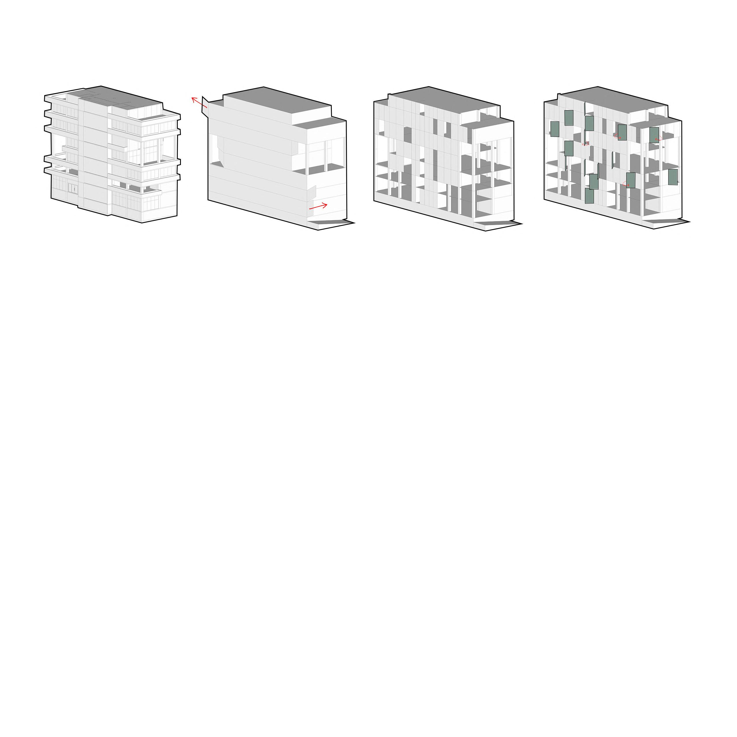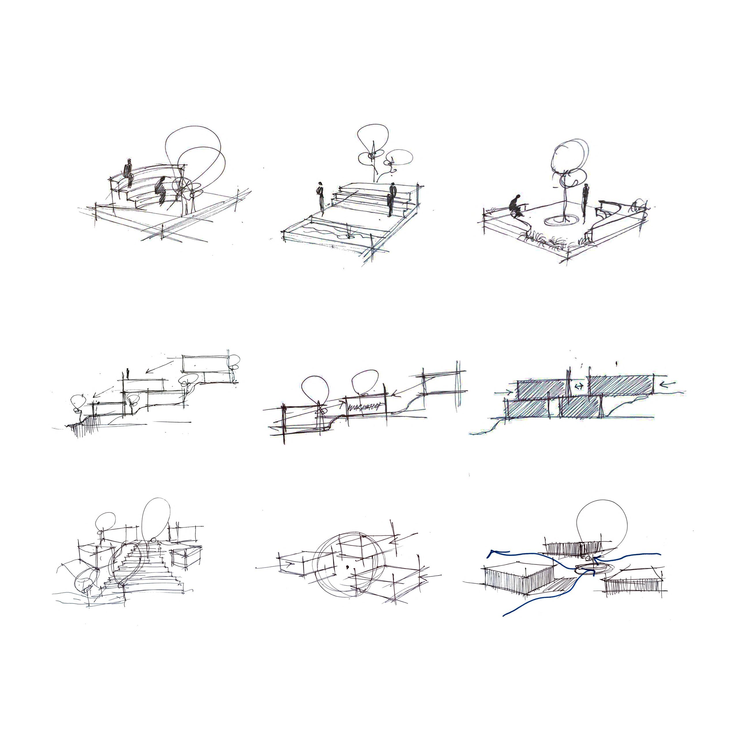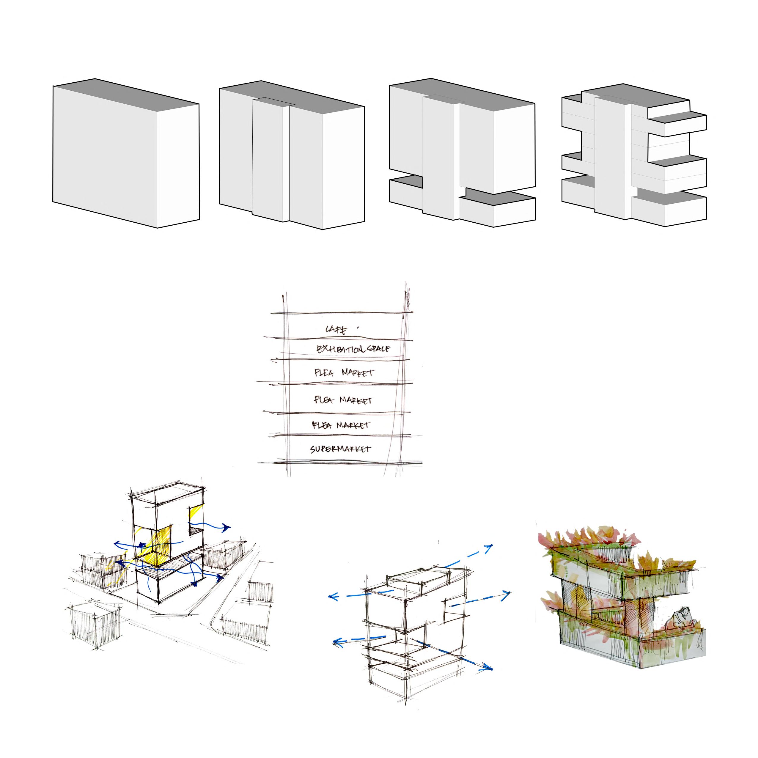 extruding each block and connecting with others, creating interactive terraces among blocks.