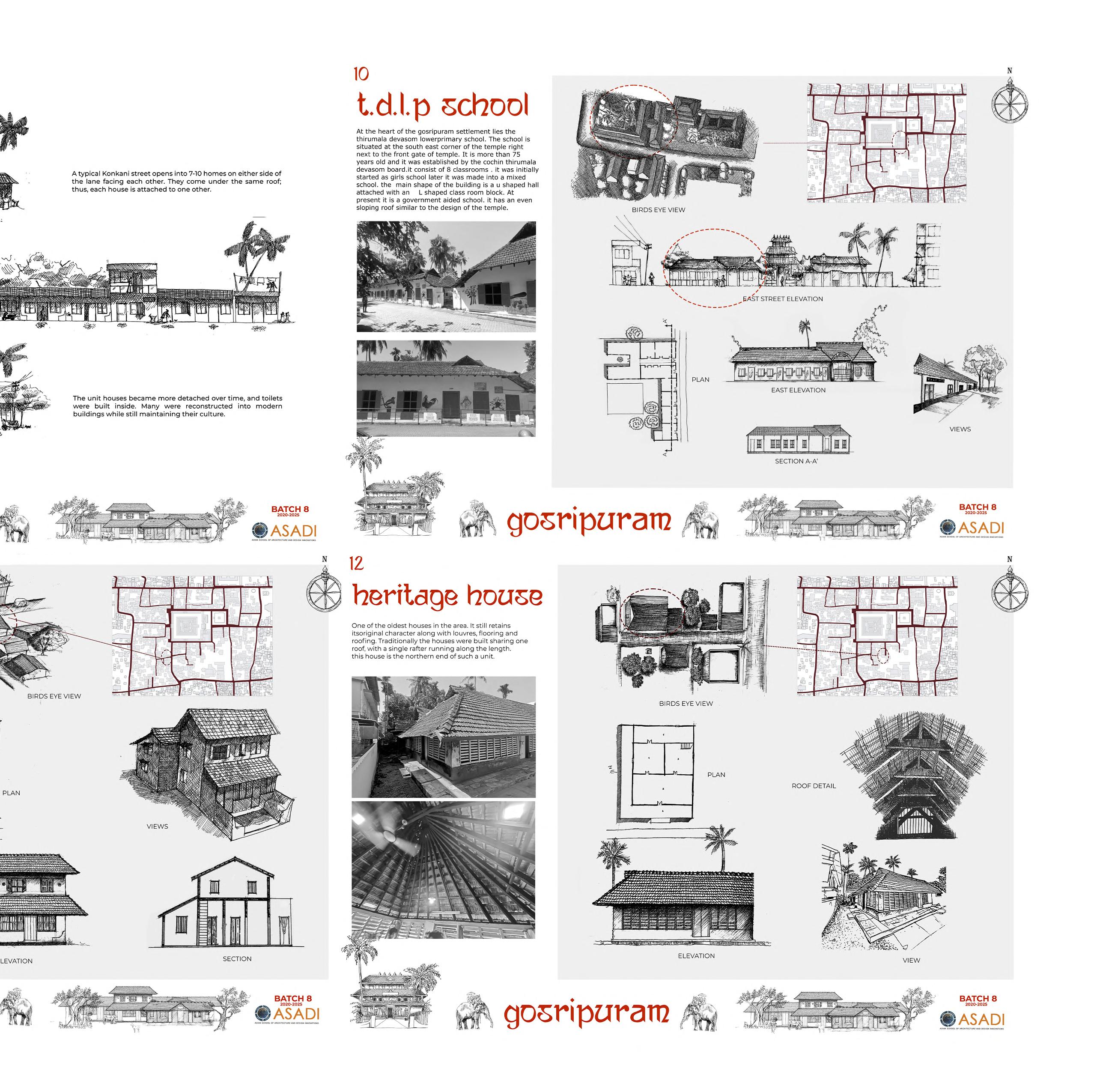 This involved researching historical records, oral histories, and archival materials to trace the evolution of the settlement and its architecture over time. Beyond physical structures, the study also analyzed the social dynamics within Gosripuram,understanding community interactions, familial ties, and how these aspects influence architectural choices and spatial organization within the settlement.