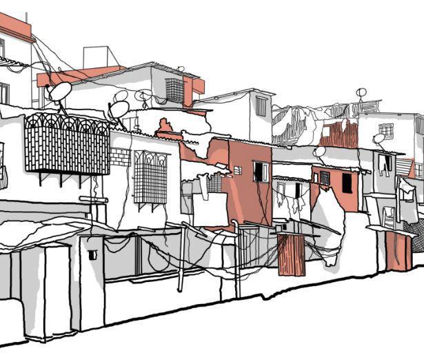 •There is nothing as modular as slums, taken as urban forms. Metal sheets, tents and precarious developments evolve constantly.