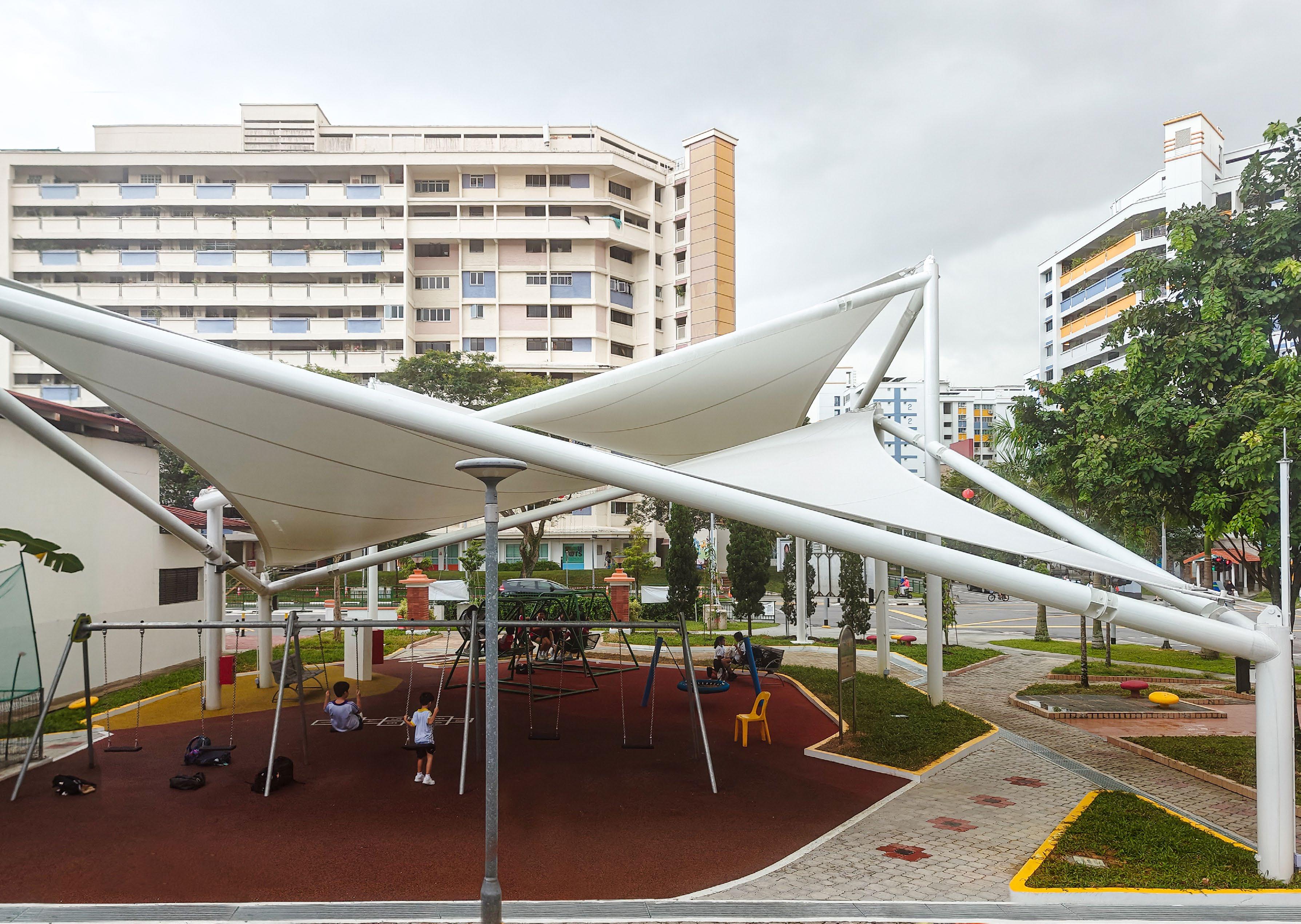 ADAS designed and installed a sleek PTFE canopy at 290 Yishun Street 22, creating a sheltered, vibrant play area for the Nee Soon East community. Featuring a hyperbolic paraboloid (Hypar) design, this durable structure ensures comfort and protection from the elements, allowing residents to enjoy outdoor activities year-round.