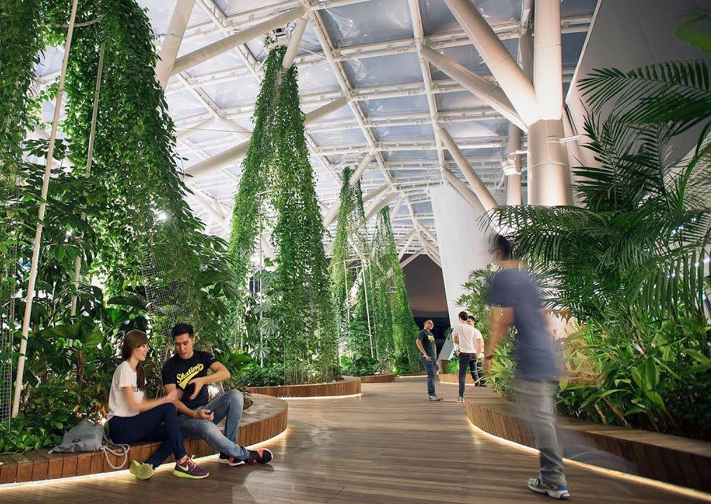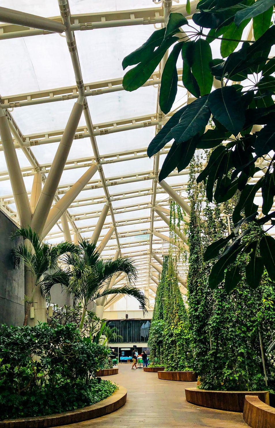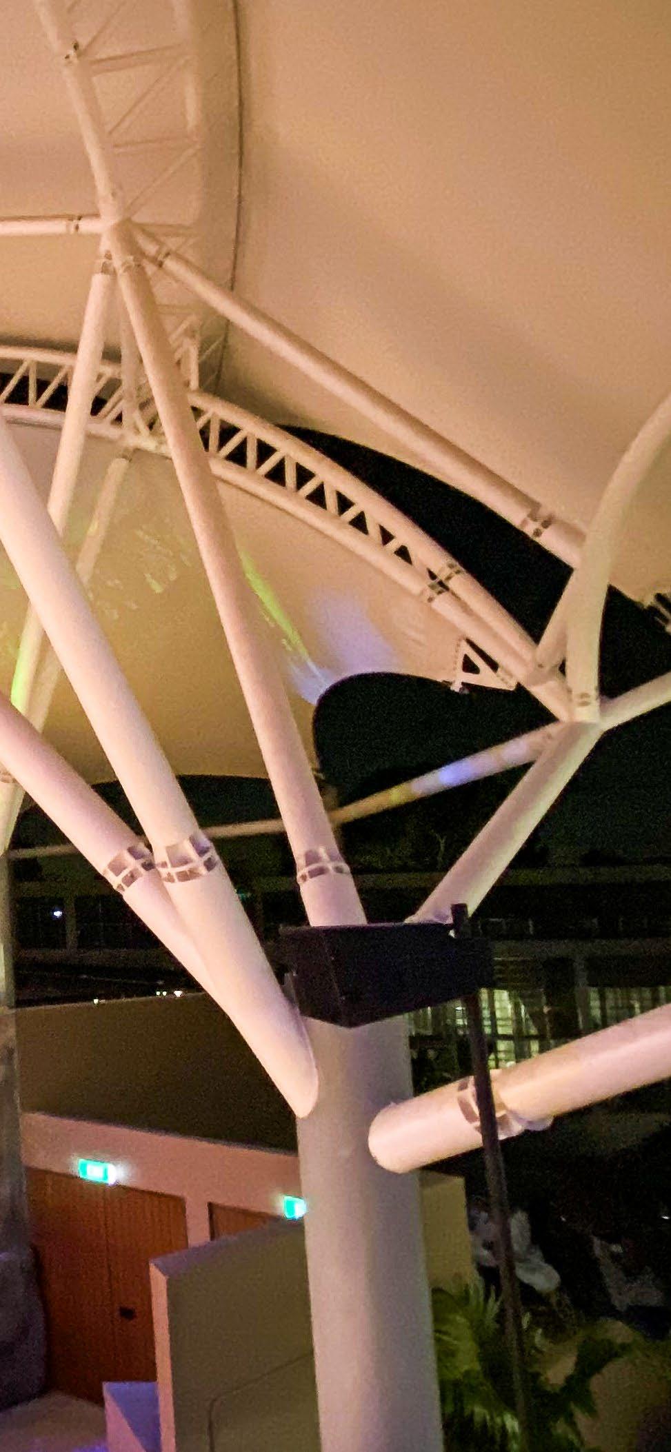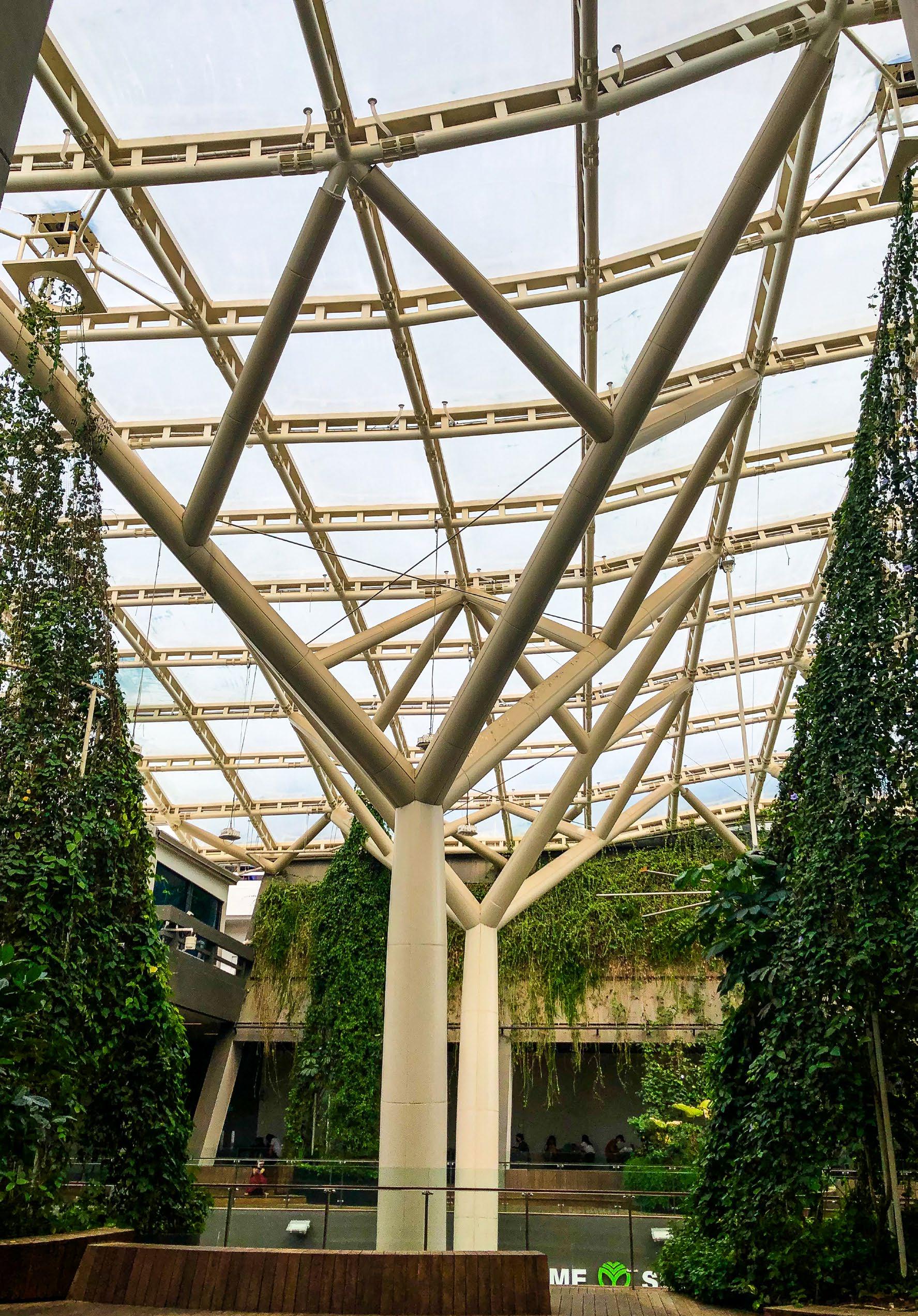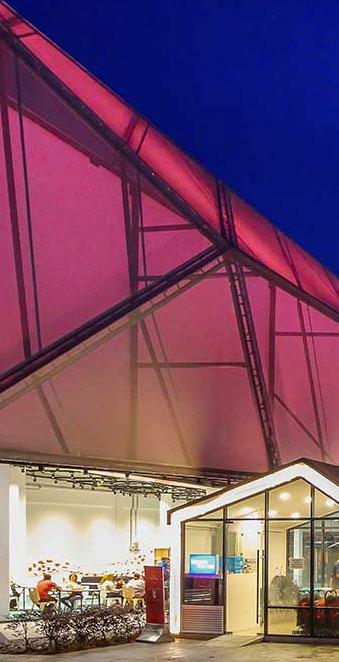 The new two-storey lifestyle hub at Nanyang Technological University (NTU) North Spine is sheltered by an ADAS® double-layer ETFE air cushion, allowing natural light to penetrate onto the decks below while ensuring protection from the rain. The tree-like design of the steel support structures further instills character into the space, which is envisioned as a bustling centre of student life, hosting both institutional and retail activities.