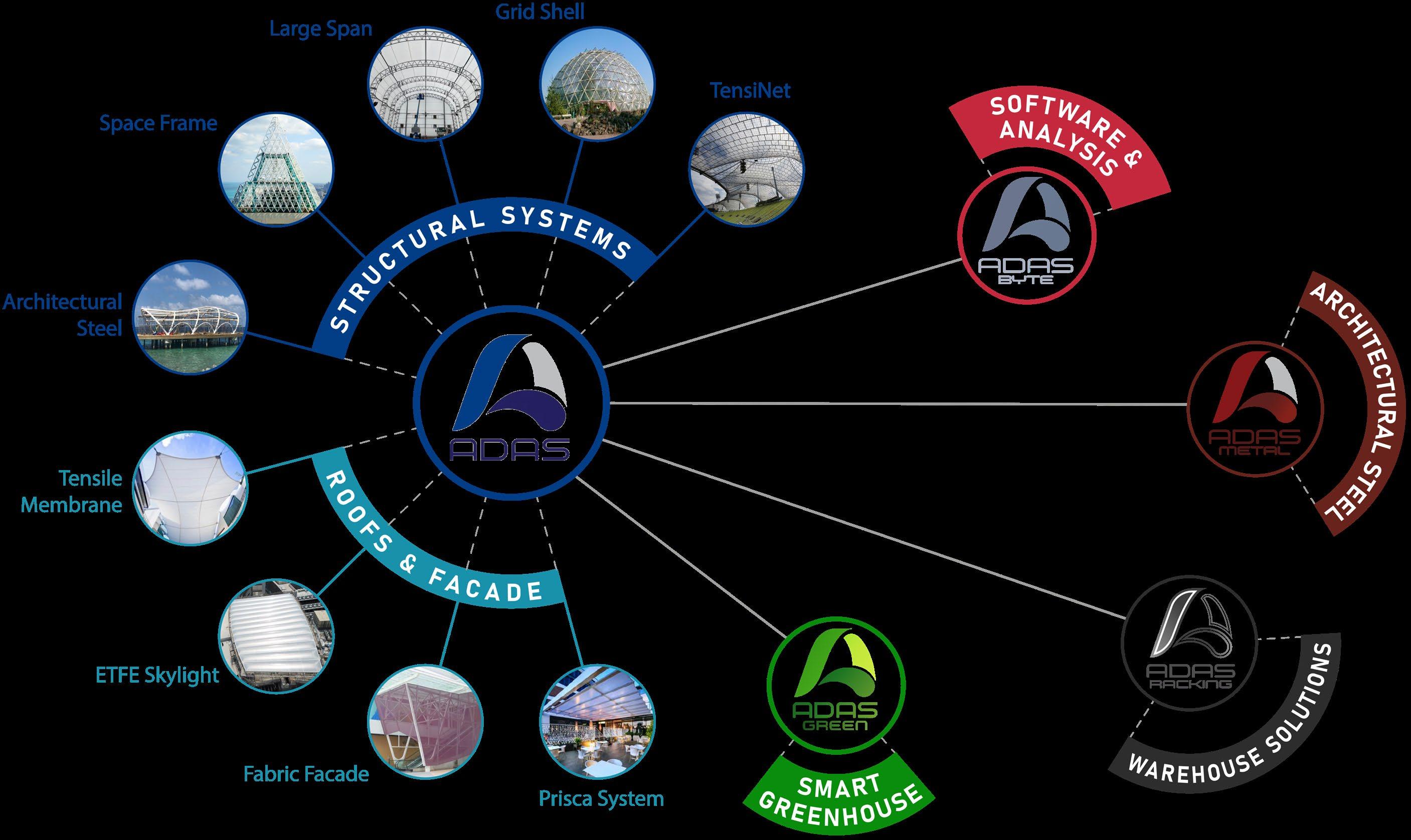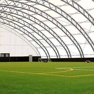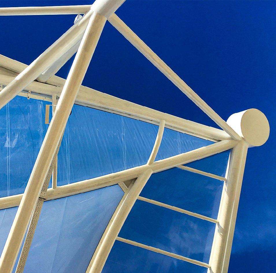 A high-performance structural system using minimal steel support and lightweight fabric cladding, enabling unobstructed internal spaces that can span up to 72 meters and beyond.