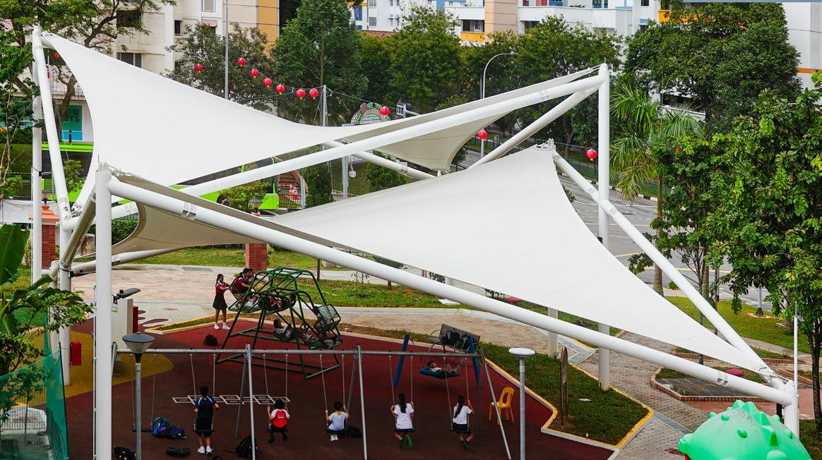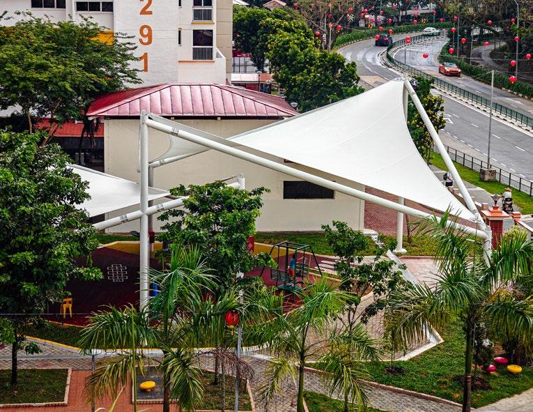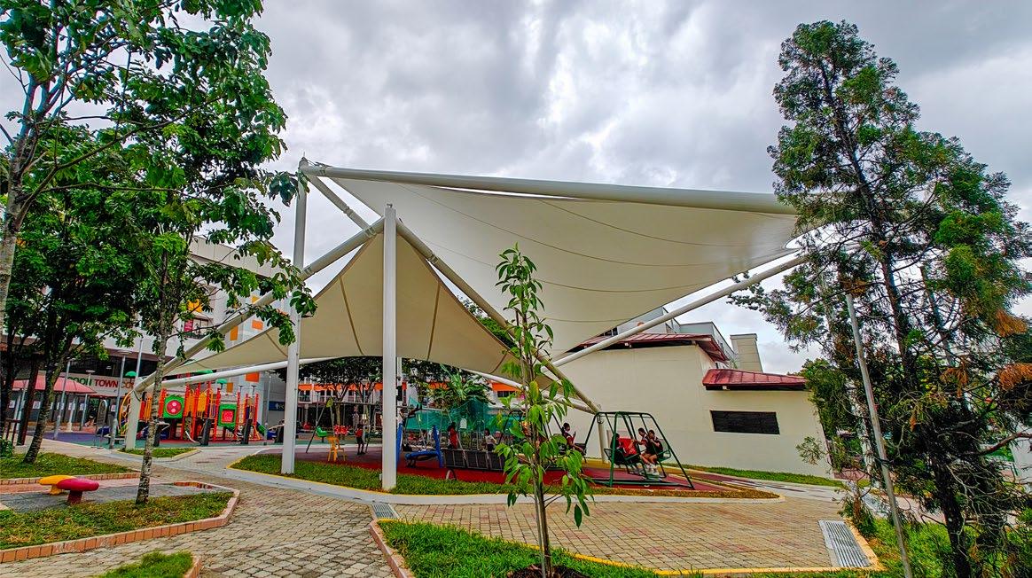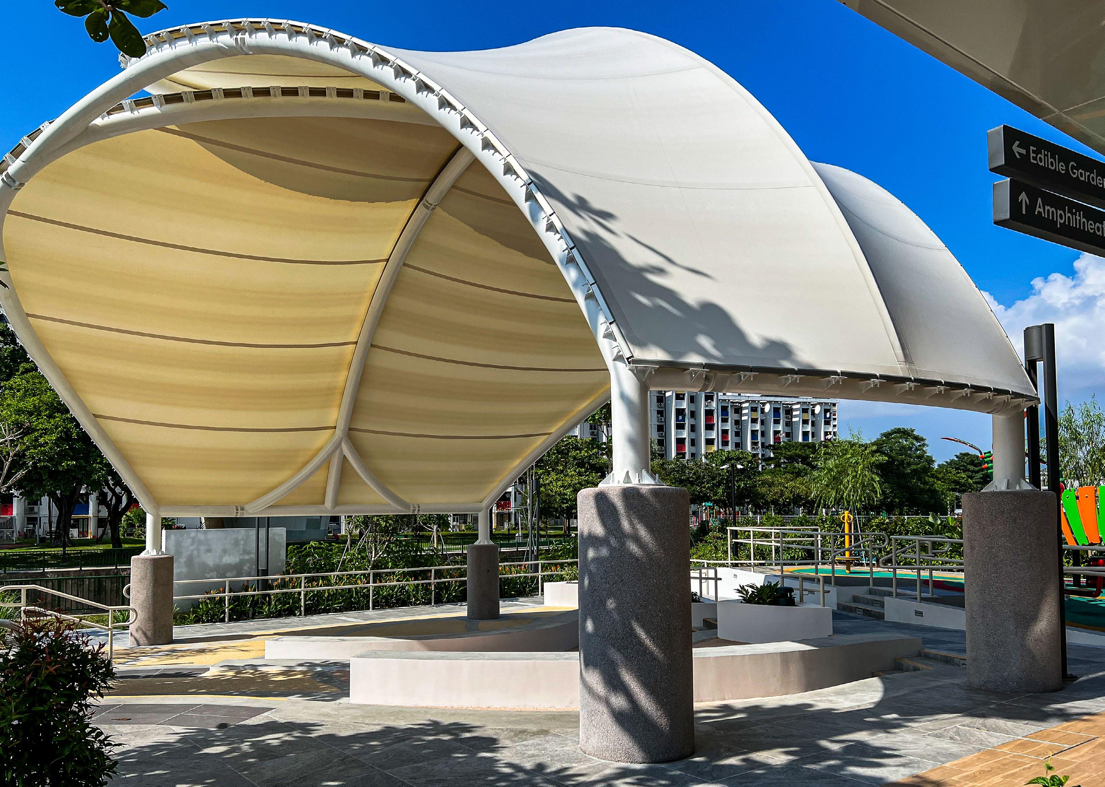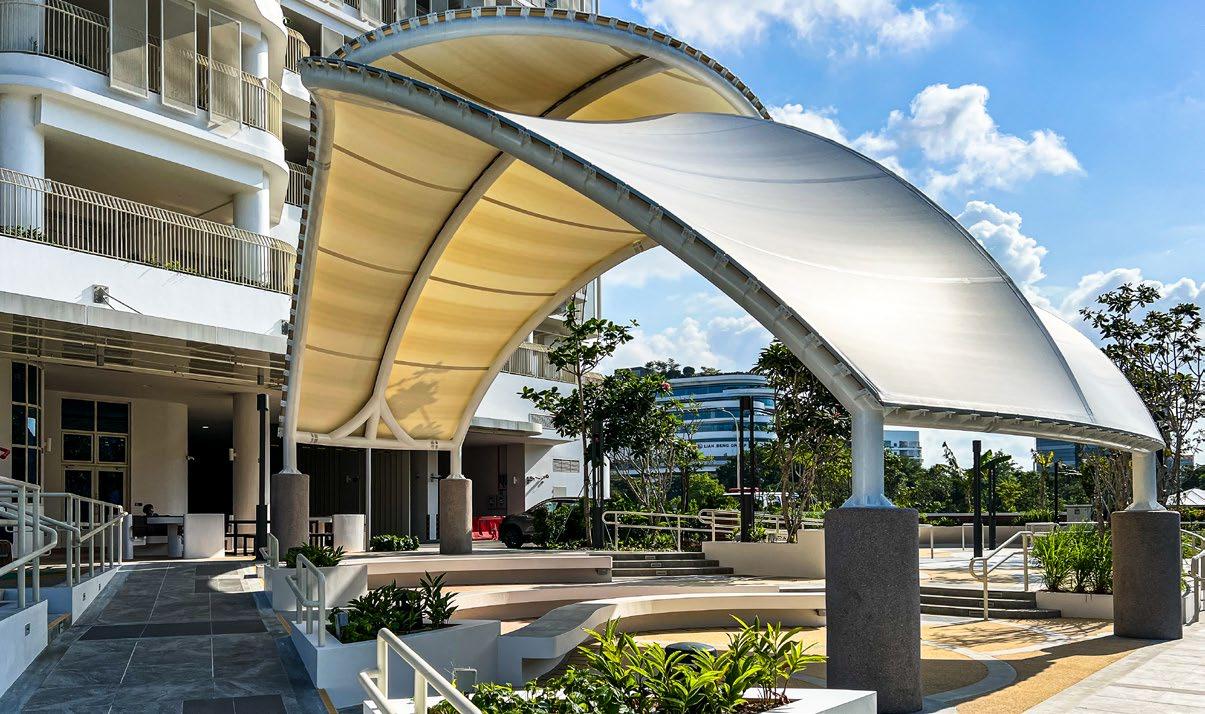 At Lentor Health in MacPherson, ADAS designed a sleek park canopy that fosters wellness by creating a comfortable, sheltered space for outdoor activity. Developed in collaboration with CPG Corporation, this lightweight tensile structure enhances accessibility, allowing residents and visitors to enjoy nature in any weather.