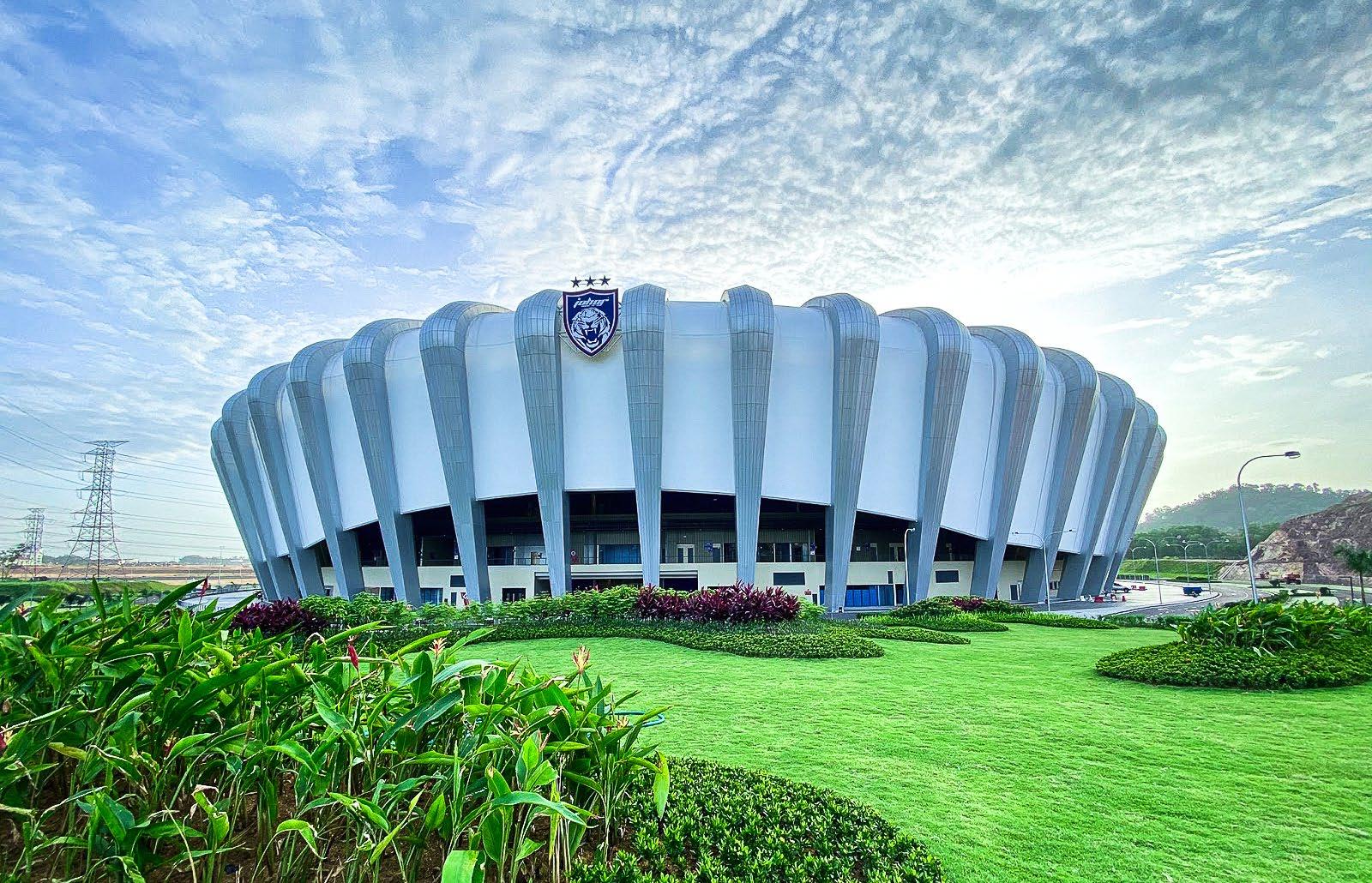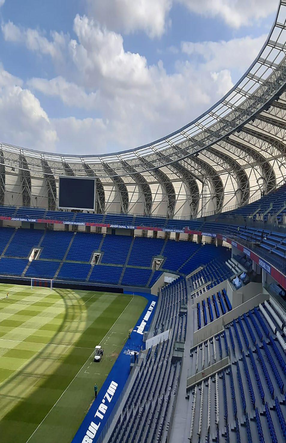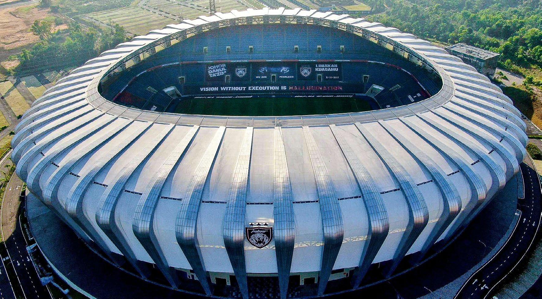 The Sultan Ibrahim Stadium is a state - of - the - art sporting venue with a capacity of 40,000 spectators, located in Johor Bahru, Malaysia. The design is based on the shape of a banana leaf, and is clad in ADAS® trademark ETFE and PTFE tensile membrane that results in a spacious lightweight structure.